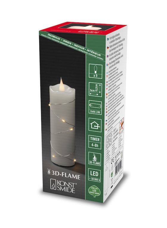 Wachskerze Weiß 5 x 5 x 15.2cm, LED 4/8H Timer, LR6/AA (1.5V) 2 Stk., 0,1W, IP20, 2100 - 2300K, 2Lm