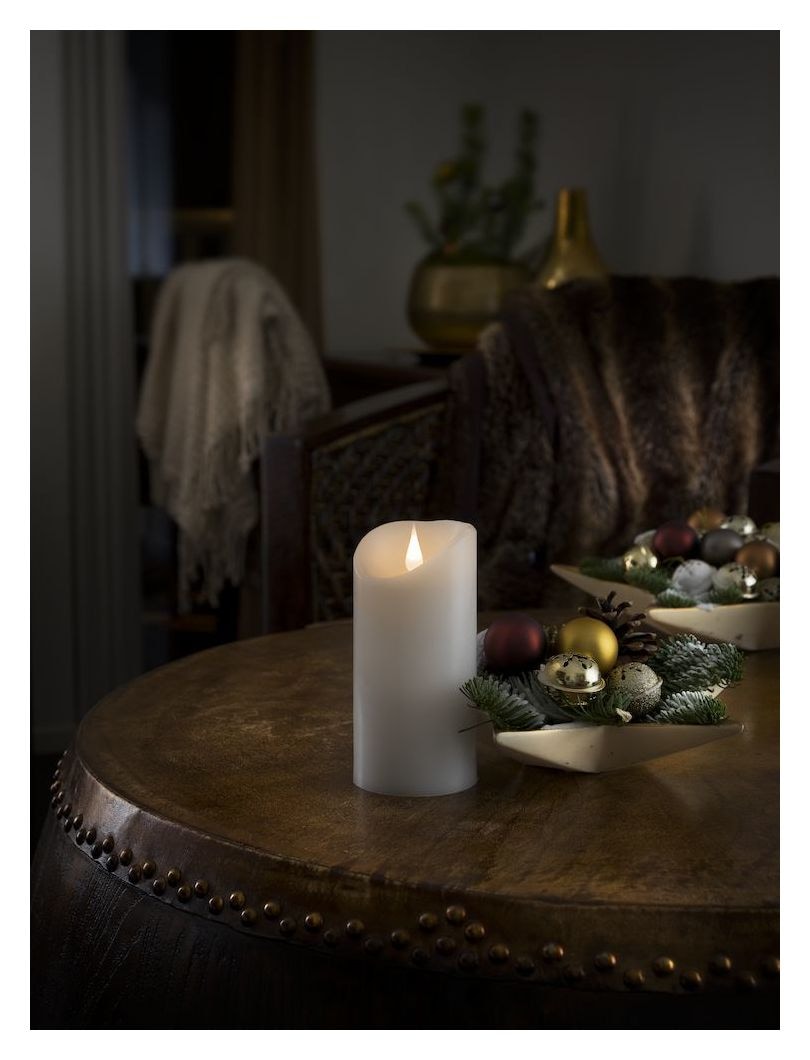 Konstsmide 1831-100. Produktfarbe: Weiß, Gehäusematerial: Wachs, Internationale Schutzart (IP-Code): IP20. Anzahl an Lampen: 1 Glühbirne(n), Leuchtmitteltyp: LED, Lichtfarbe: Warmweiß. Energiequelle: Akku, Aufladequelle: Akku. Breite: 75 mm, Tiefe: 75 mm, Höhe: 155 mm