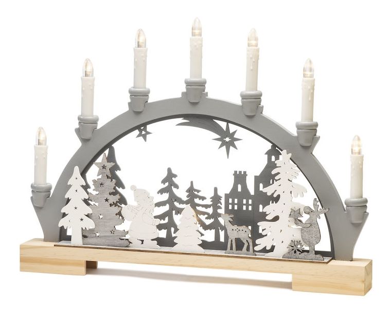 LED Holzsilh., 7 Kerzen 10 warmw. Diod., Tim. 6H, B/B 2xAA