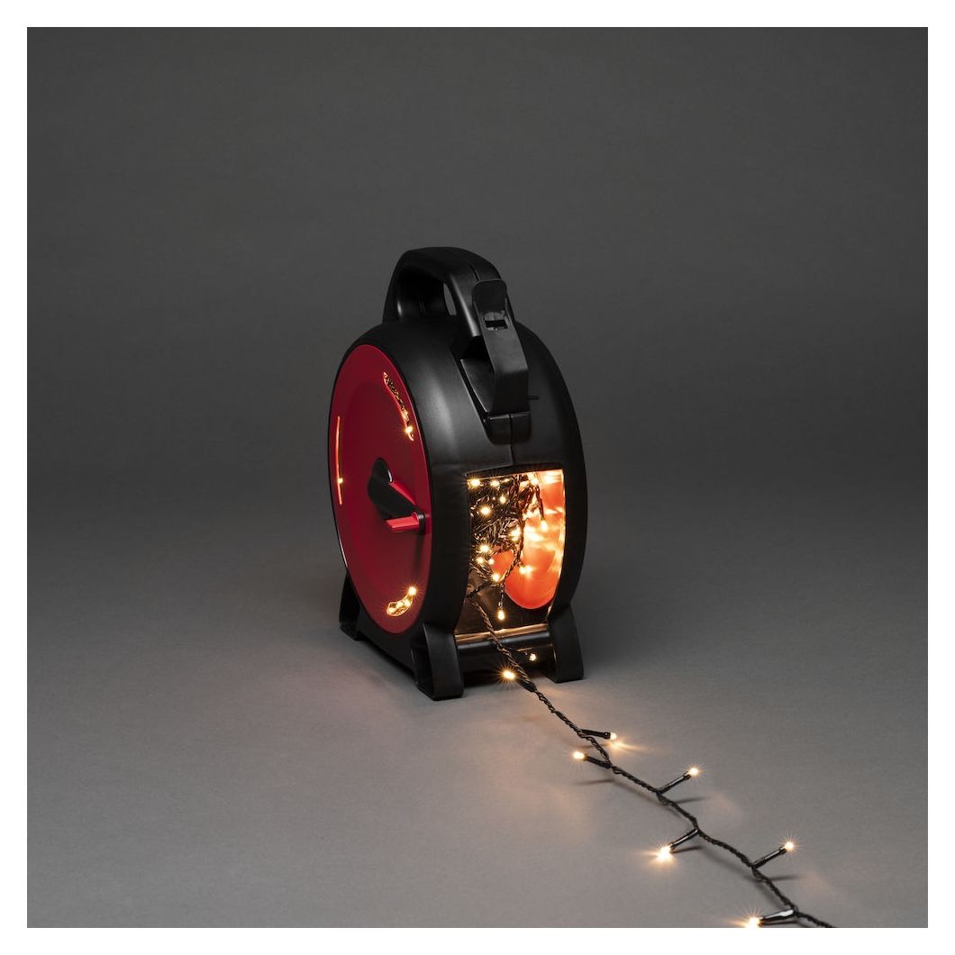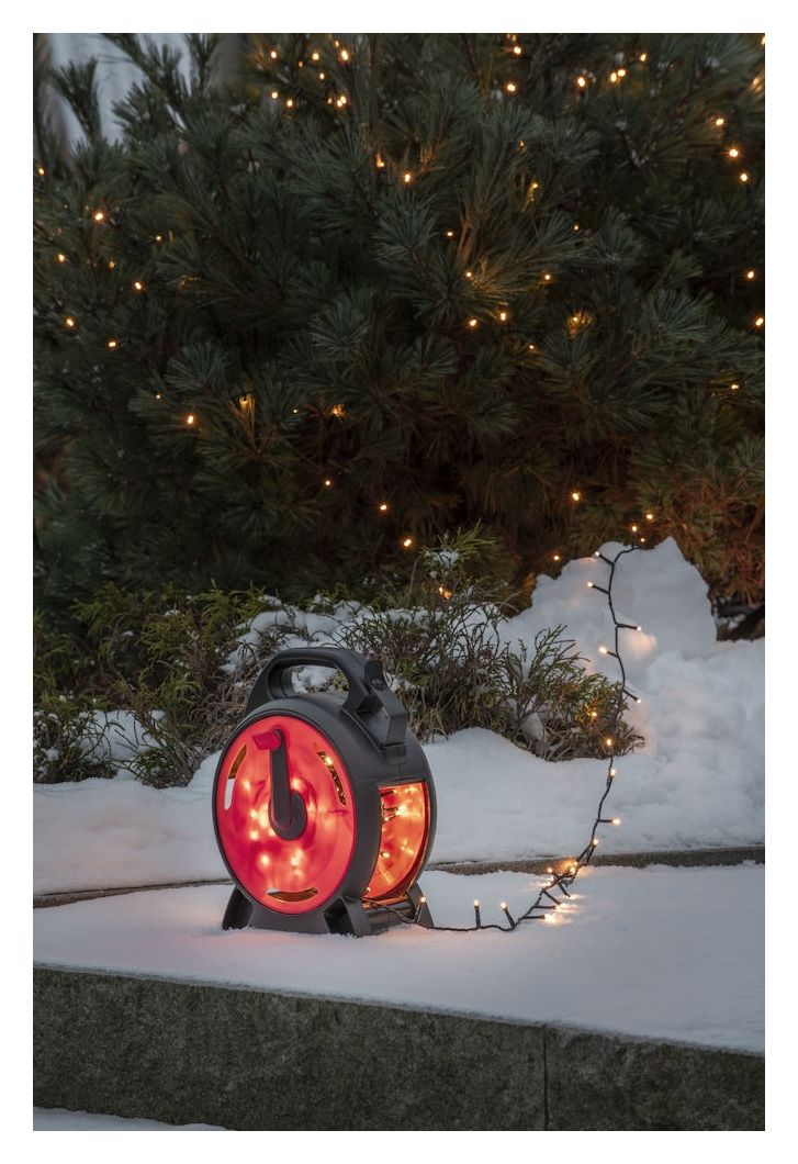 Konstsmide 3834-807. Anzahl Lampe(n): 400 Lampen, Lampentechnologie: LED, Lichtfarbe: Bernstein. Unterstützte Positionierung: Drinnen/Draußen, Produktfarbe: Schwarz, Rot, Material: Kunststoff. Energiequelle: Gleichstrom, Energieeffizienzklasse: E, Energieverbrauch pro 1.000 Stunden: 7 kWh. Länge (m): 37,93 m, Breite: 245 mm, Tiefe: 146 mm. Menge pro Packung: 1 Stück(e)