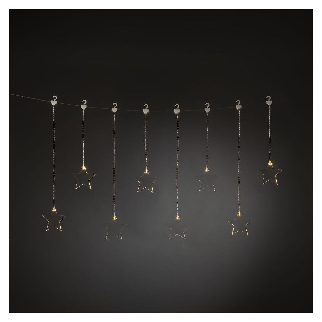 Konstsmide 4452-103. Produkttyp: Leichte Dekorationsfigur, Produktfarbe: Transparent, Gehäusematerial: Kunststoff. Anzahl an Lampen: 8 Glühbirne(n), Leuchtmitteltyp: LED, Gesamtleistung: 1,5 W. Energiequelle: AC, Arbeitsspannung: 3 V. Höhe: 59 mm, Länge (mm): 1050 mm, Kabellänge: 5 m. Menge pro Packung: 1 Stück(e), Verpackungsart: Geschenkbox