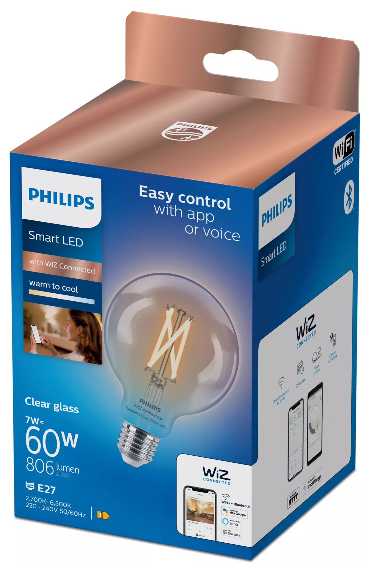 Smarte LED Filament-Kugellampe klar 7 W (entspr. 60 W) G95 E27 Einstellbares Weiß Glas Einfaches Plug-and-Play Steuerung mit der WiZ-App oder per Sprache