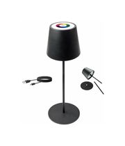 Die RGB LED Tischleuchte von SCHWAIGER® sorgt für stimmungsvolle Ambientebeleuchtung passend zu jedem Anlass. Dank eingebautem und wiederaufladbarem Akku eignet sich die stilvolle Lampe perfekt für den kabellosen Einsatz am Tisch, sowohl innen als auch draußen. Die Lichtsteuerung erfolgt dabei intuitiv über das am Lampenschirm integrierte Touchpanel, mit dem Lichtfarbe und Helligkeit mühelos eingestellt werden können.