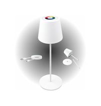 Die RGB LED Tischleuchte von SCHWAIGER sorgt für stimmungsvolle Ambientebeleuchtung passend zu jedem Anlass. Dank eingebautem und wiederaufladbarem Akku eignet sich die stilvolle Lampe perfekt für den kabellosen Einsatz am Tisch, sowohl innen als auch draußen. Die Lichtsteuerung erfolgt dabei intuitiv über das am Lampenschirm integrierte Touchpanel, mit dem Lichtfarbe und Helligkeit mühelos eingestellt werden können.