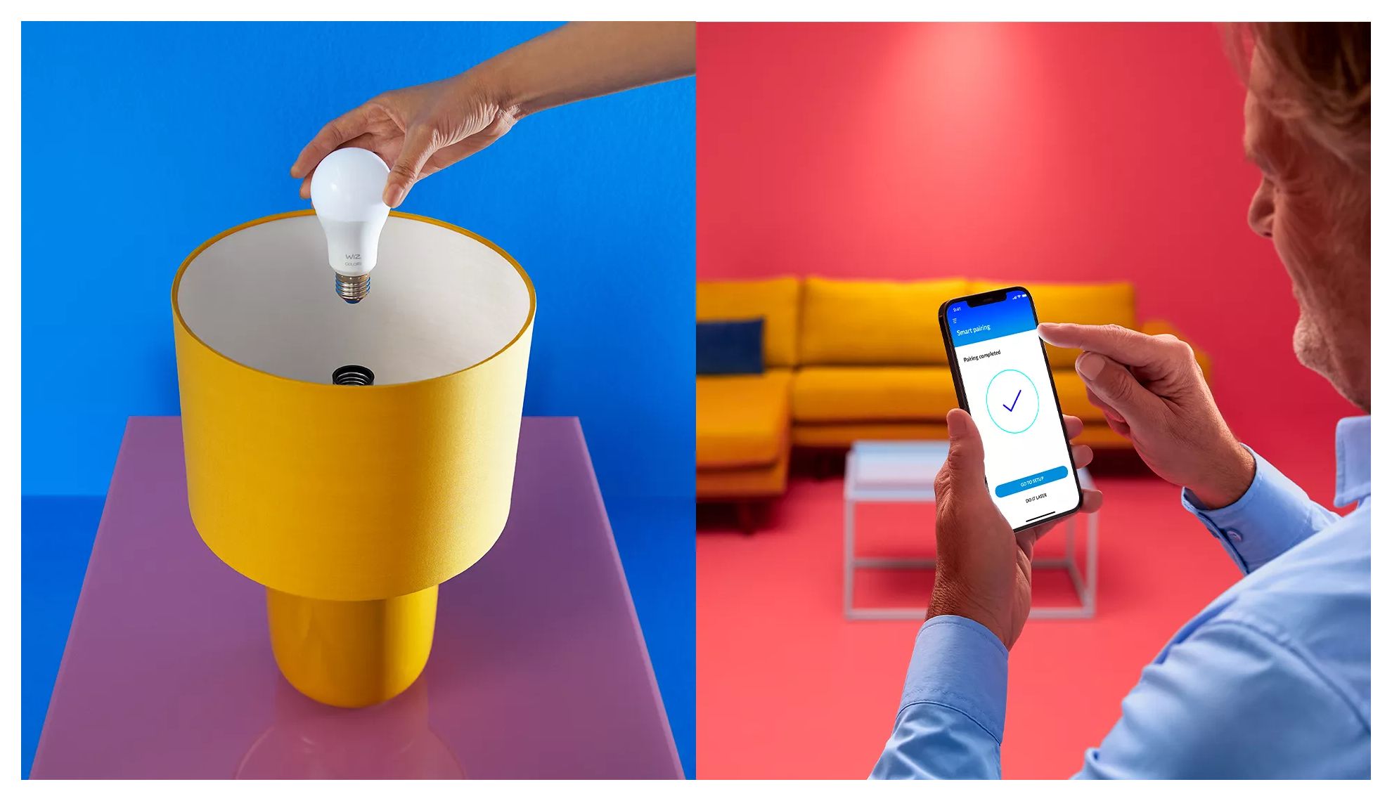 Die WiZ A60 Full Color LED-Lampe bringt smarte Beleuchtung in Deinen Alltag. Sie lässt sich in jeder Leuchte nachrüsten und schafft die von Dir gewünschte Atmosphäre mit 16 Millionen Farben oder einem warmweißen bis kaltweißen Licht. Du kannst Zeitpläne zum Ein- und Ausschalten des Lichts für Deine täglichen oder wöchentlichen Aktivitäten einrichten oder das Licht mit Deinem Smartphone oder Deiner Stimme steuern. Bei Abwesenheit leistet Dir die Fernsteuerung gute Dienste. WiZ-Lampen verbinden sich ohne zusätzliche Hardware mit Deinem WLAN.