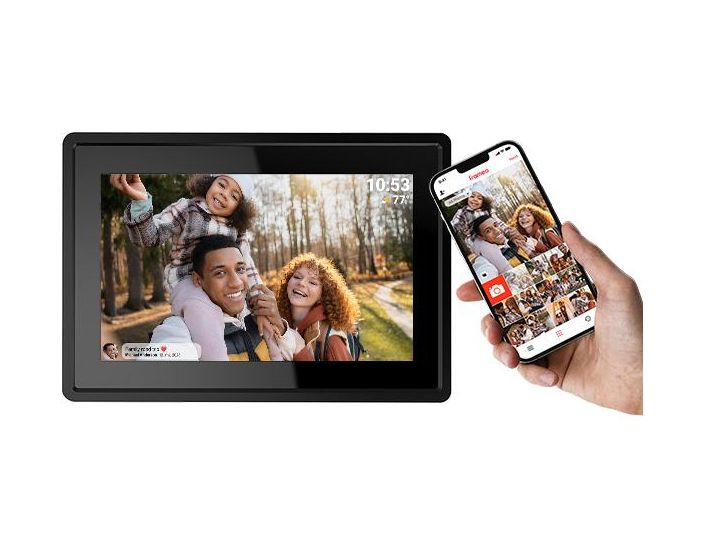 Denver PFF-725B. Bildschirmdiagonale: 17,8 cm (7"), Display-Auflösung: 1024 x 600 Pixel, Display: IPS. Unterstützte Bildformate: JPEG. Interne Speicherkapazität: 8 GB, Kompatible Speicherkarten: MicroSD (TransFlash). Schnittstelle: WLAN, USB-Stecker: USB Typ-C. Wiedergabemodi: Rotation