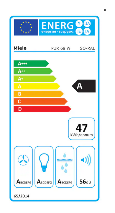PUR68WSO-RAL Abluft/Umluft Dunstabzugshaube/Esse Wand 60 cm (Schwarz)