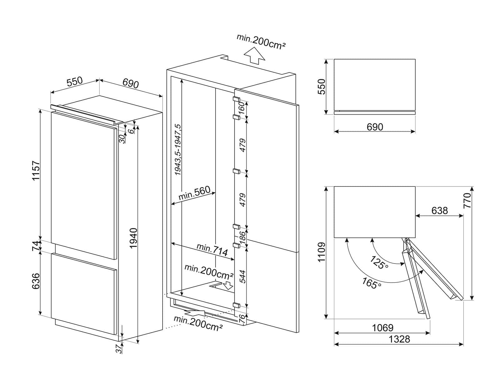 C875TNE 280 l / 90 l 194,3 cm Einbau Kühl-/Gefrierkombination 247 kWh NoFrost