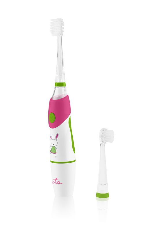 Eta Sonetic. Zweck: Kind, Zahnbürstentyp: Schallzahnbürste, Produktfarbe: Limette, Pink, Weiß. Energiequelle: Akku, Akku-/Batterietyp: AAA. Anzahl enthaltener Griffe: 1 Stück(e), Anzahl enthaltener Bürstenköpfe: 2 Stück(e)