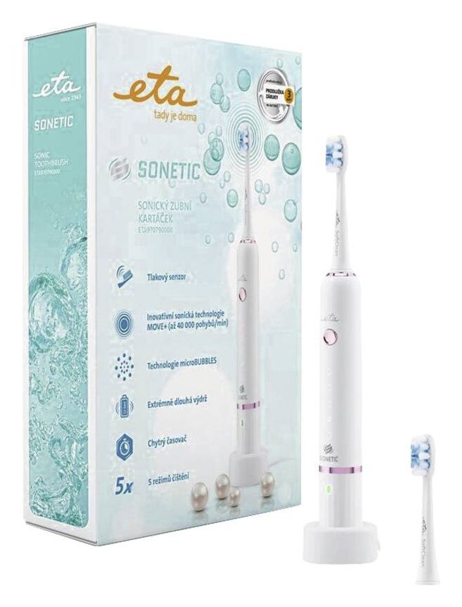 Eta SONETIC, Erwachsener, Schallzahnbürste, Weiß, 40000 Bewegungen pro Minute, Oval, Akku
