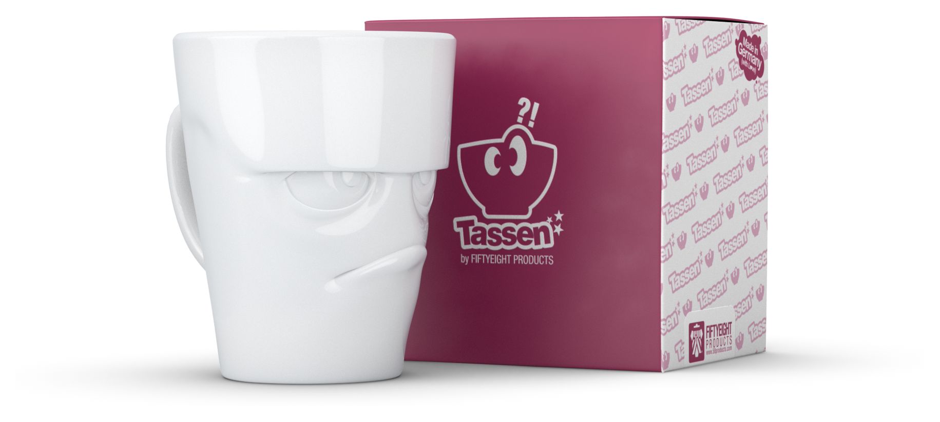 Unser Henkelbecher Grummelig in weiß Ideal geeignet für Milchkaffee, große Tasse Kaffee, Tee oder Kakao und vieles mehr. Wird in einer schönen Geschenkbox geliefert.
