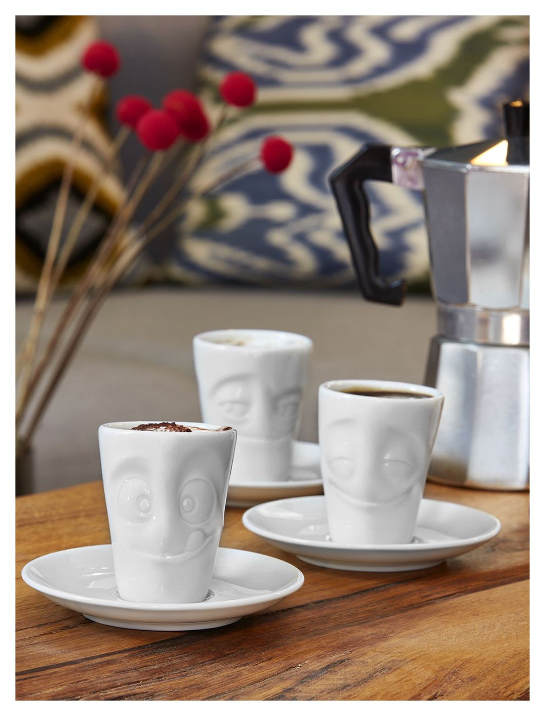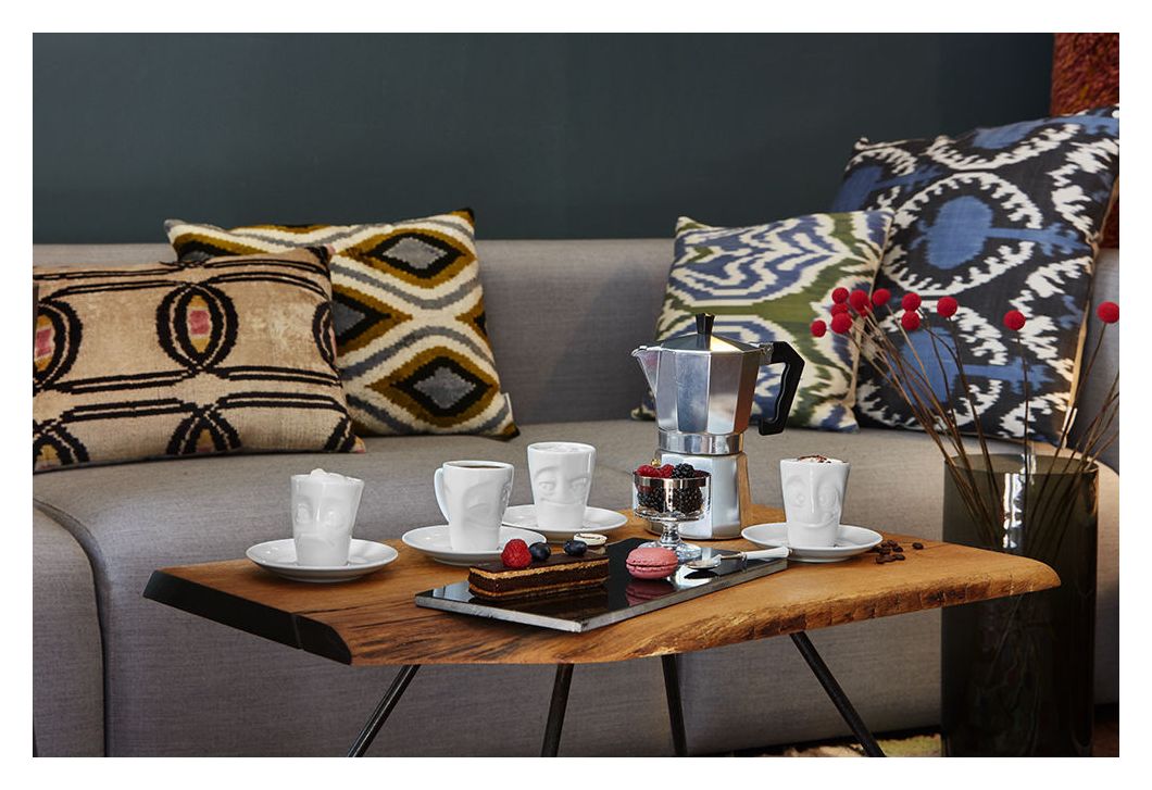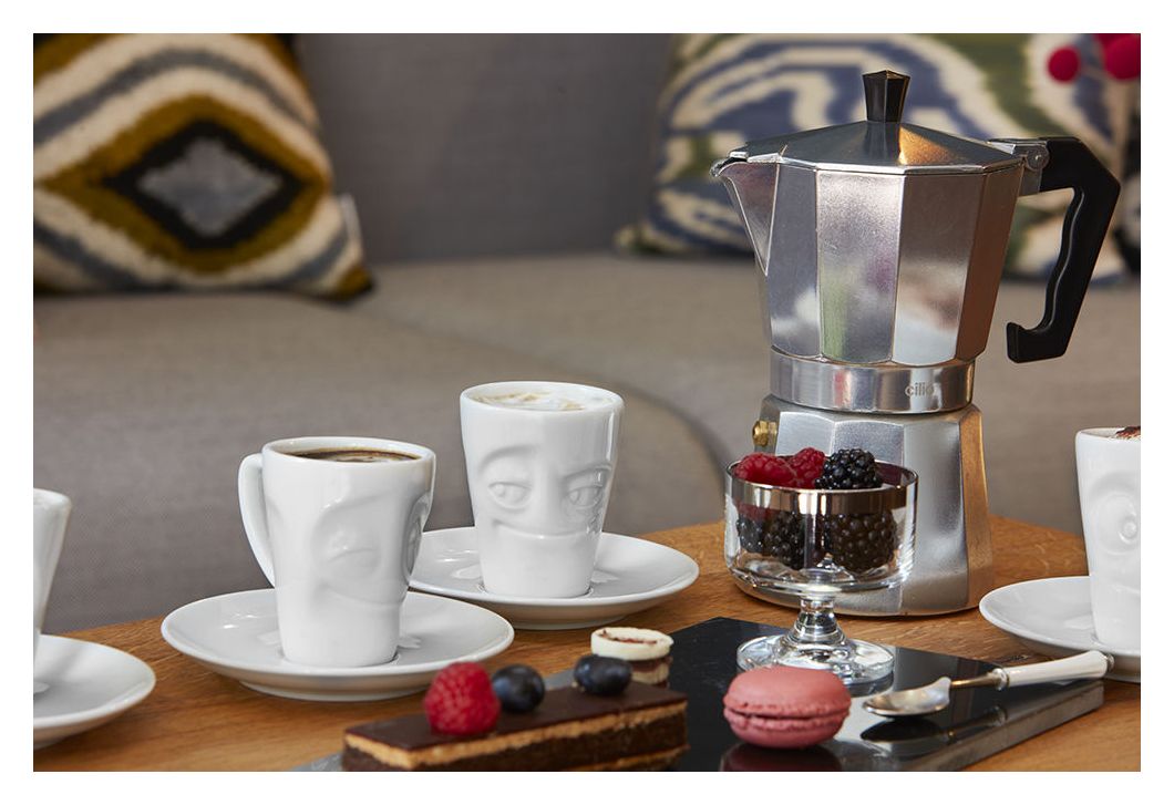 Unser Espresso-Mug mit Henkel Verdutzt, 80 ml Frei nach dem Motto „klein aber oho“ hat unser neuer Espresso Mug VERDUTZT Einzug ins TASSEN Universum gehalten. Es handelt sich um die Mini-Version unseres Henkelbechers. Mit im Gepäck kommen noch 5 weiteren Geschwisterchen, die alle einzeln dazu bestellt werden können. Wird in einer schönen Geschenkbox geliefert.