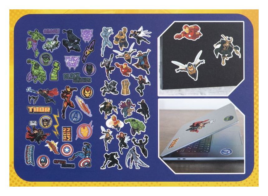 Erlebe die geballte Power der Avengers! Dieses vielseitige Set enthält 20 hochwertige Magnete und 30 Sticker mit beliebten Helden und Symbolen aus dem Marvel-Universum als Motiv.