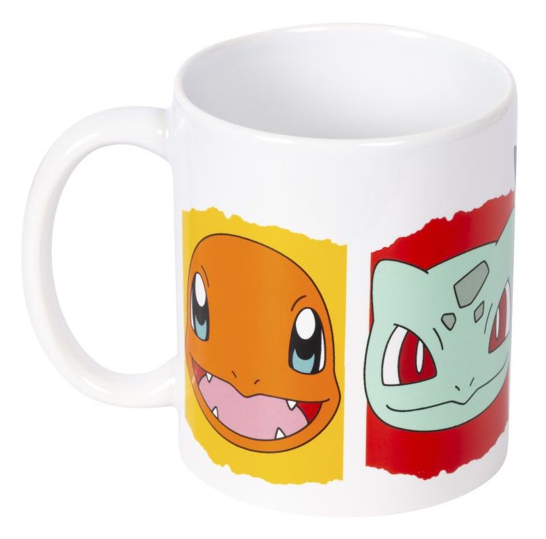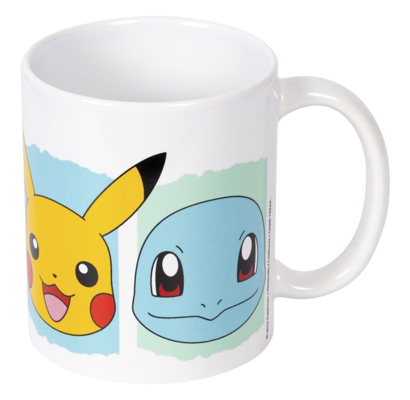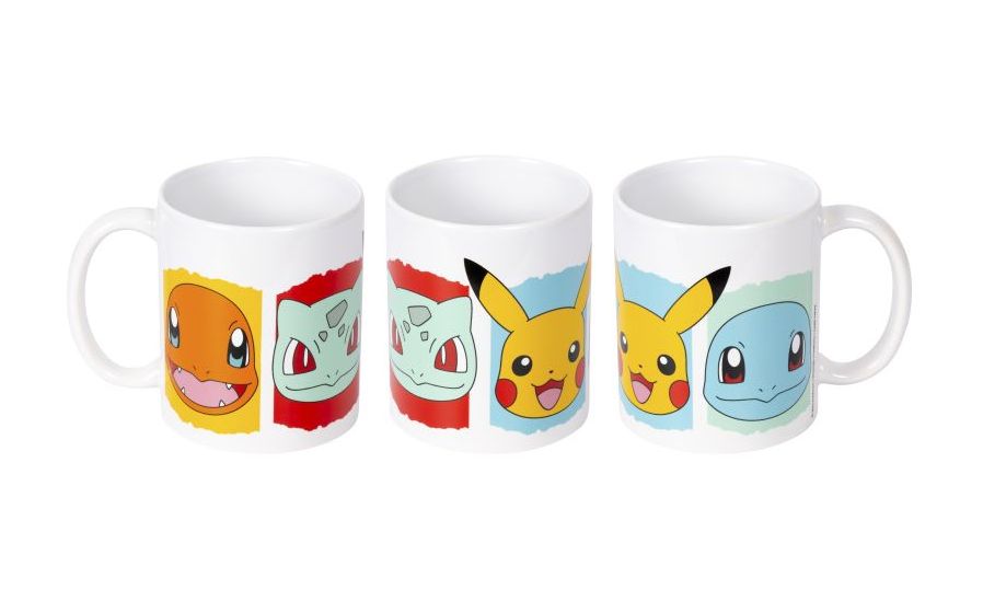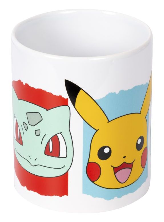 Beginne deinen Tag mit einem Lächeln – denn auf dieser stylischen Pokémon-Tasse blicken dir die fröhlichen Gesichter von Pikachu, Bisasam, Glumanda und Schiggy entgegen!