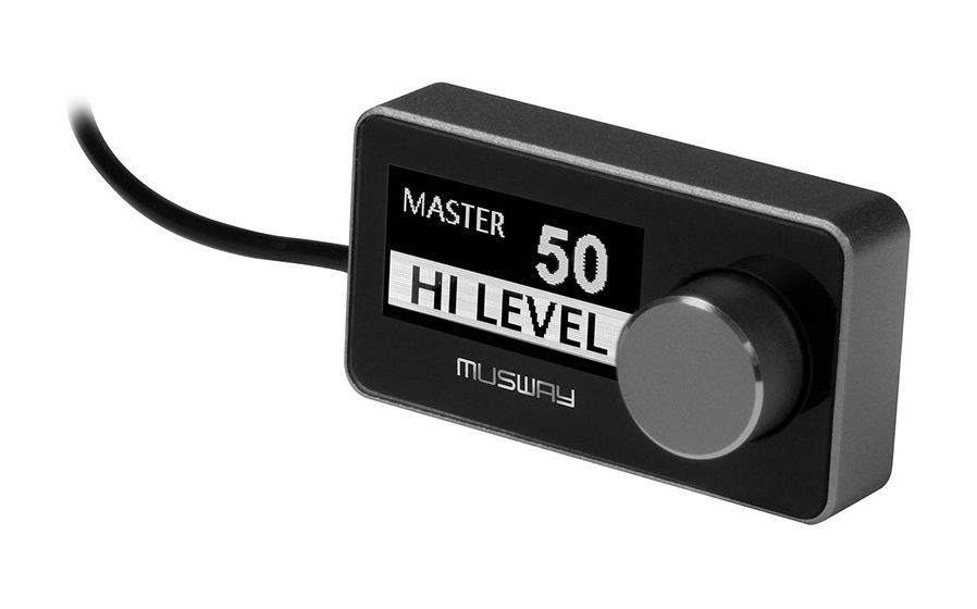 Musway DRC1. Fernbedienung Nutzung: Audio, Schnittstelle: Kabelgebunden. Maximale Reichweite: 5 m. Eingangssignal: Drehregler. Eingebautes Display