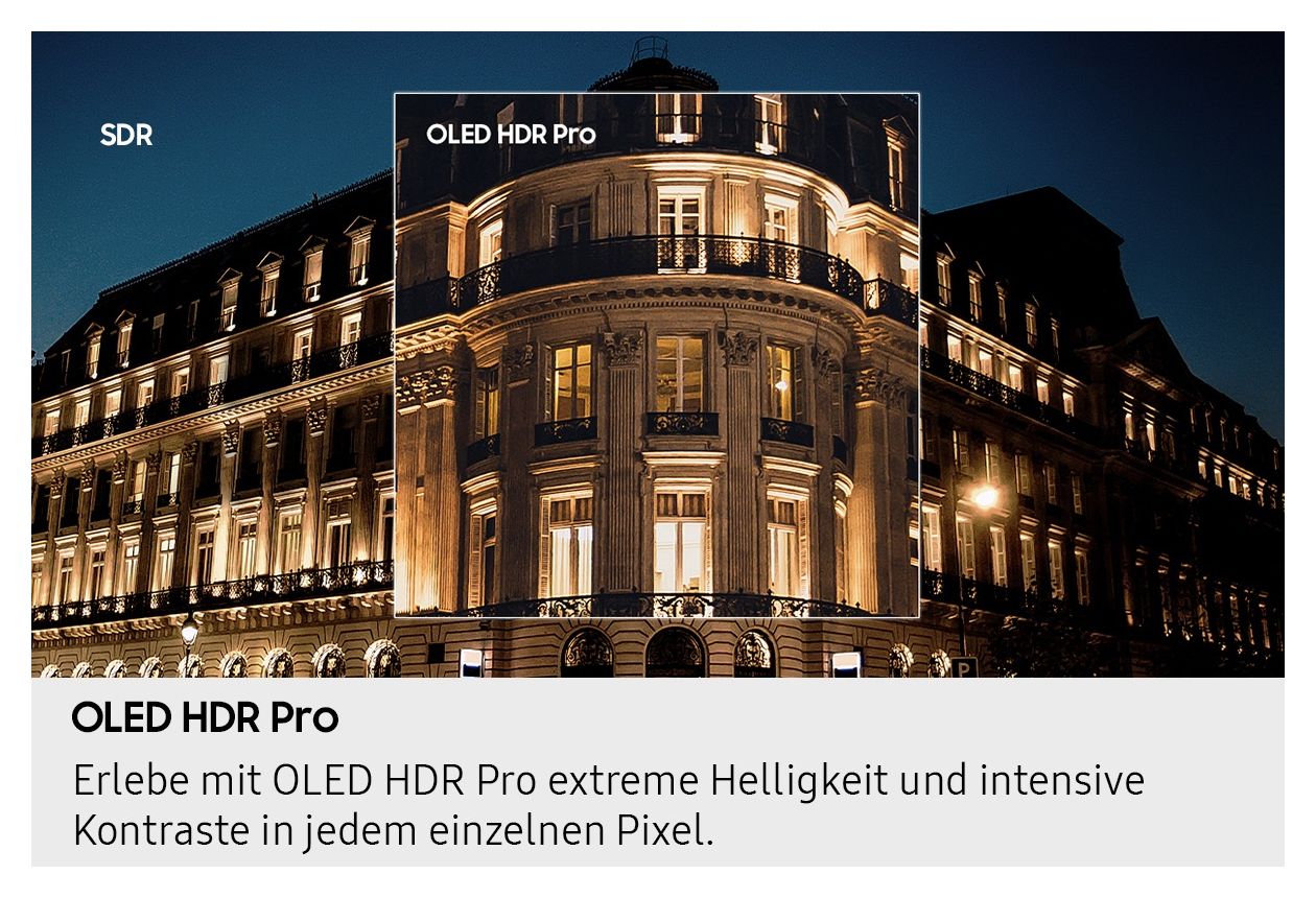Samsung OLED beschert deinen Augen tiefe Schwarztöne, lupenreine Weißtöne und lebendige Farben in sämtlichen Schattierungen. Verantwortlich dafür sind die neuartigen selbstleuchtenden Pixel, die mit der Quantum-Dot-Technologie kombiniert werden.