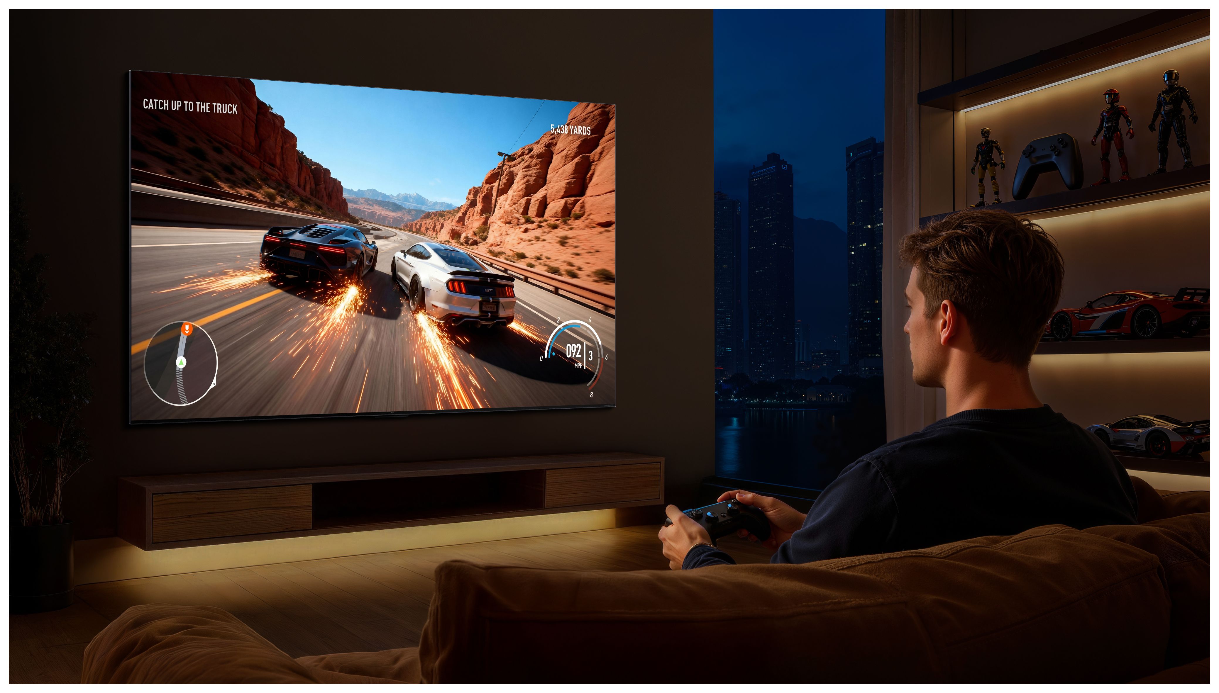 - Umgebungsbeleuchtung: Integrierte Umgebungsbeleuchtung – Passt die Lichtstimmung an und sorgt für ein immersives Seherlebnis.