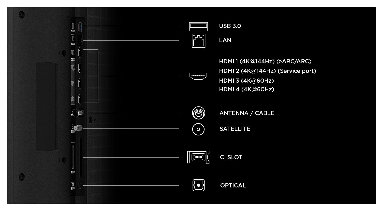 - WLAN: Integriertes WLAN – Kabellose Verbindung für Smart-TV-Funktionen.