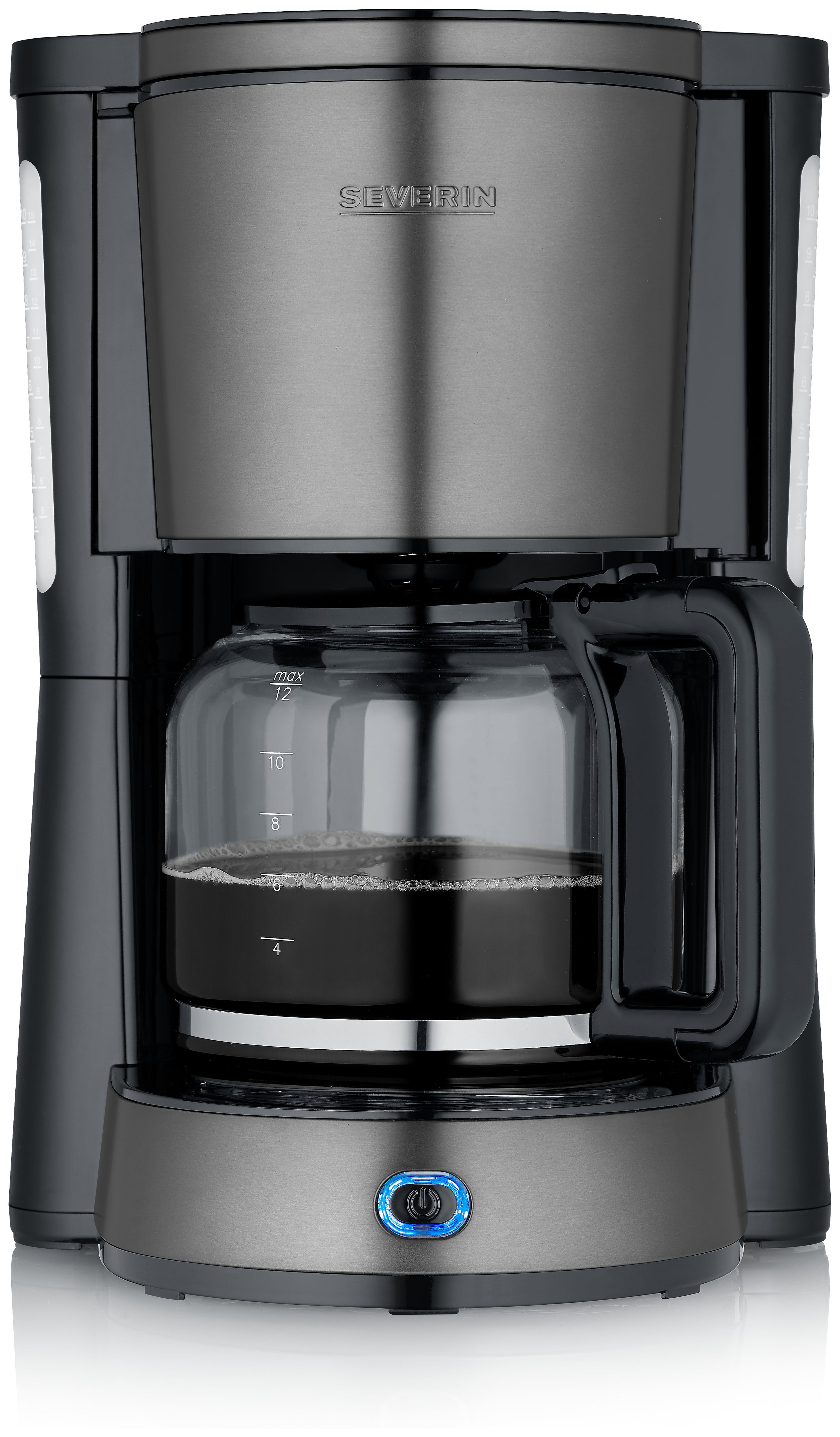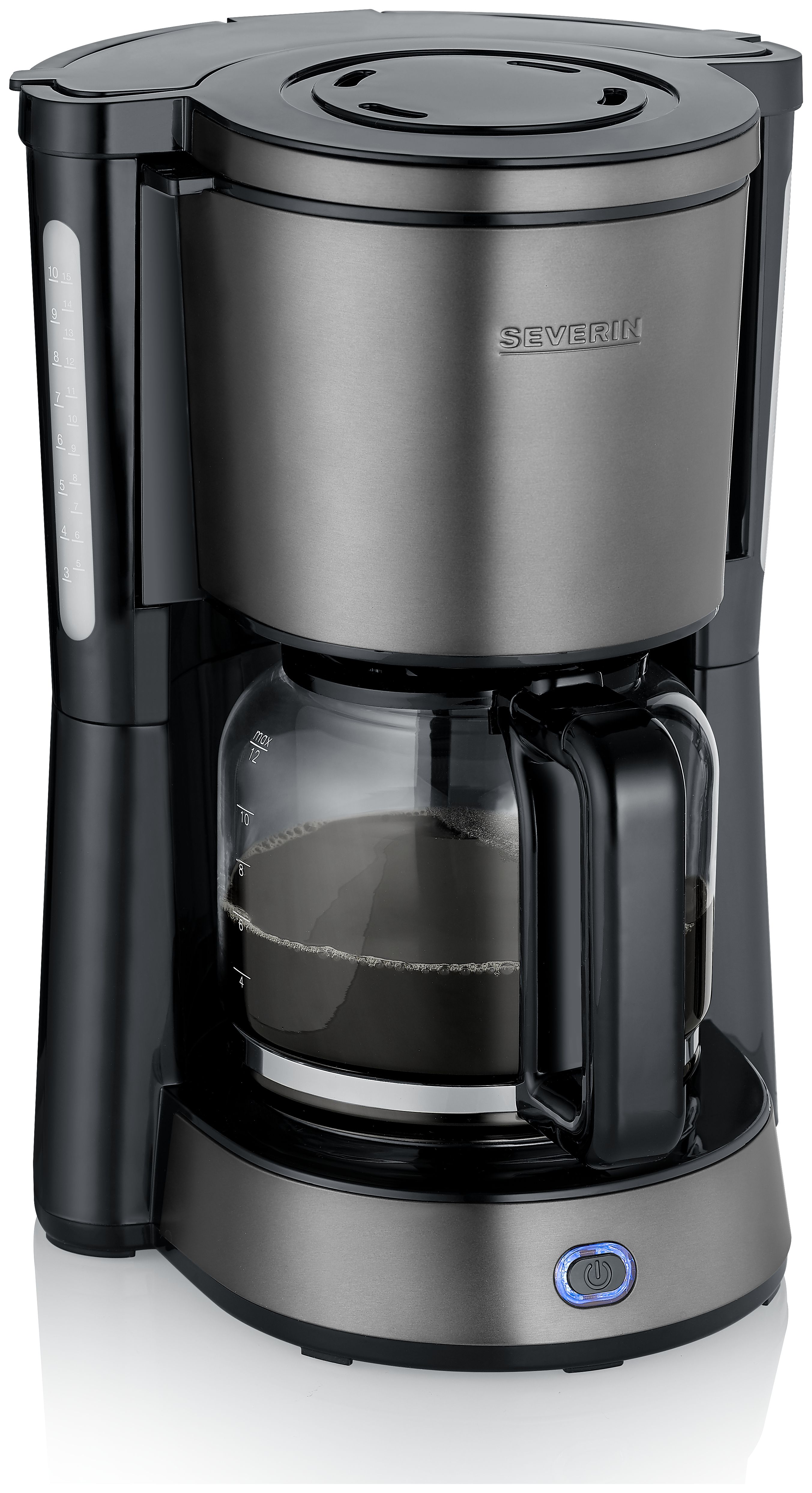 Severin KA 9340. Produkttyp: Filterkaffeemaschine, Kaffeezubereitungstyp: Halbautomatisch, Fassungsvermögen Wassertank: 1,25 l, Kaffee-Einfüllart: Gemahlener Kaffee, Behälter für gebrühten Kaffee: Karaffe. Leistung: 1000 W. Produktfarbe: Schwarz, Edelstahl