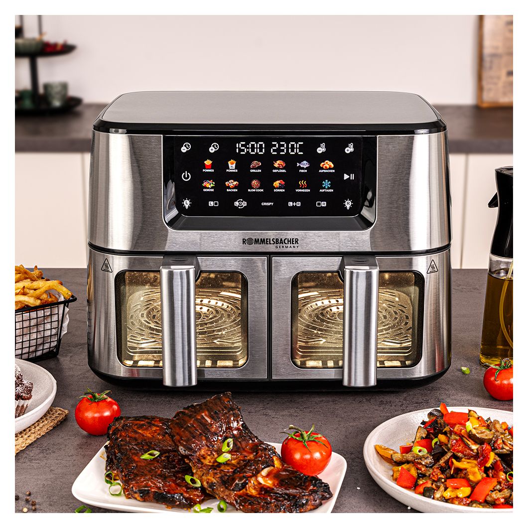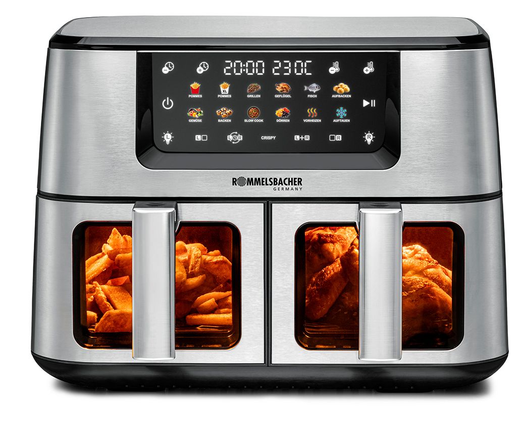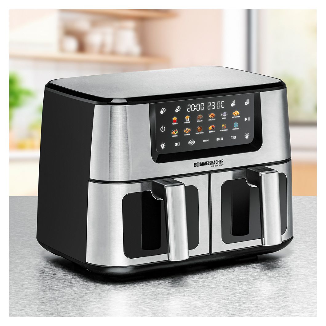 FRH2650 Doppel Heißluftfritteuse 5,5 l 2700 W (Schwarz, Edelstahl)