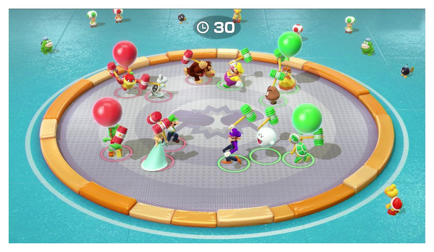 Beat-Bühne, ein bewegungsgesteuertes Rhythmusspiel mit einer ganzen Schar von Toads