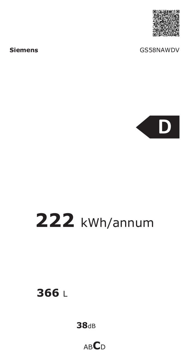 iQ500 GS58NAWDV 366 l Gefrierschrank 222 kWh Jahr NoFrost (Weiß)