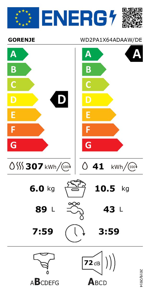 Gorenje WD2PA1X64ADAAW/DE 10,5 kg 6 kg Waschtrockner 1400 U/min