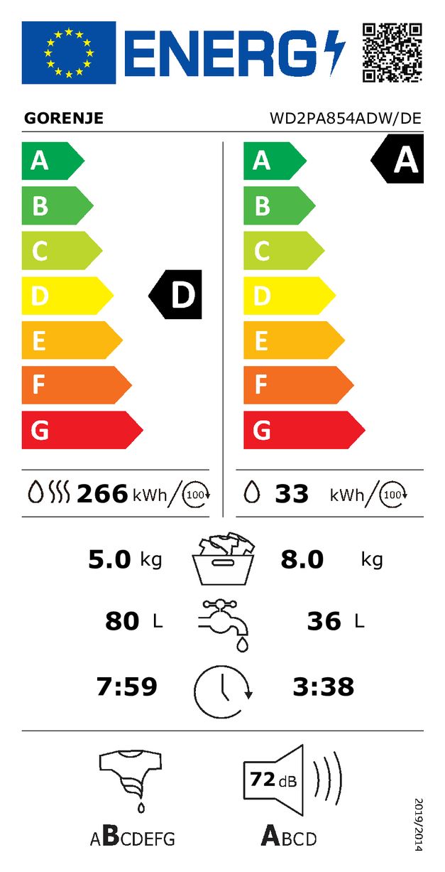 Gorenje WD2PA854ADW/DE 8 kg 5 kg Waschtrockner 1400 U/min