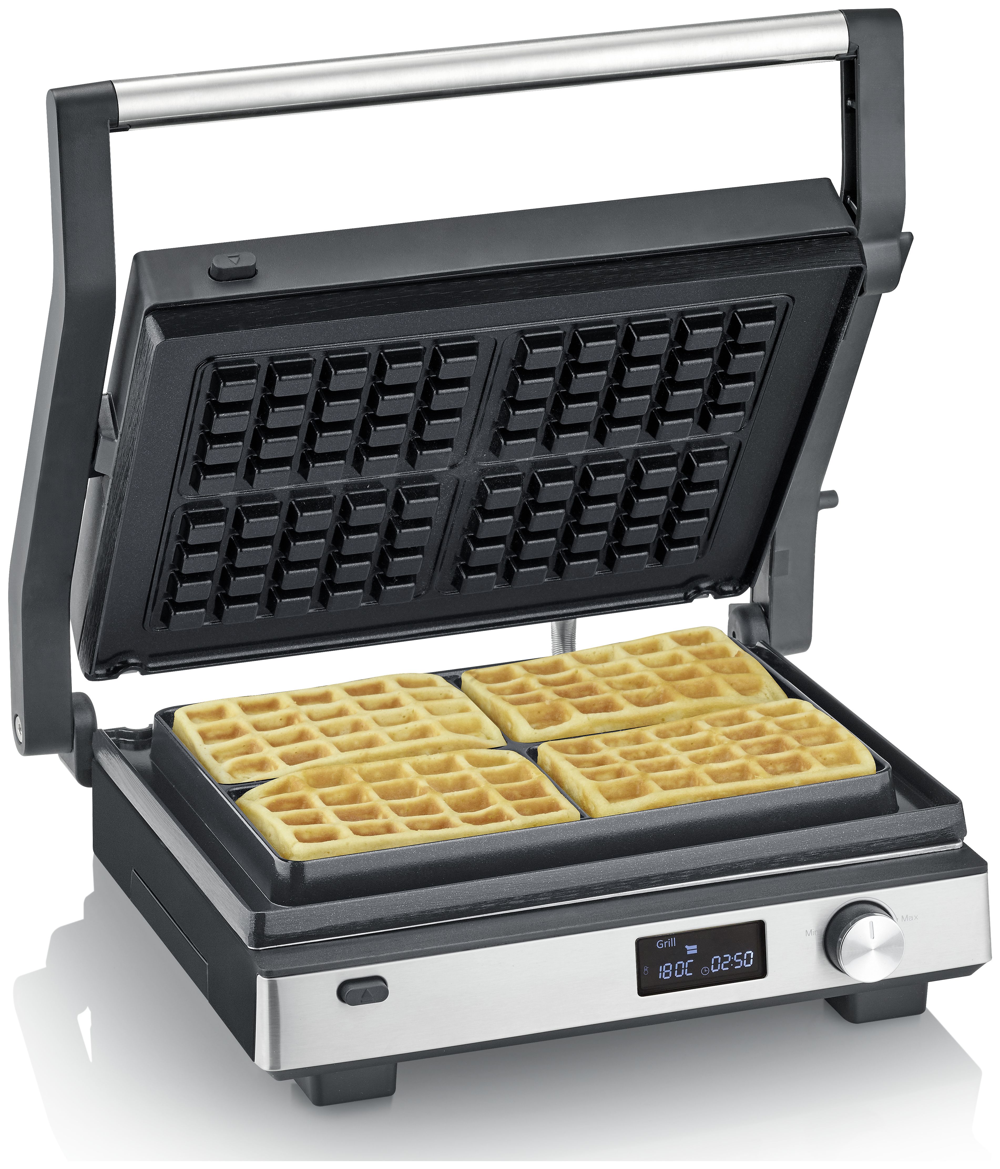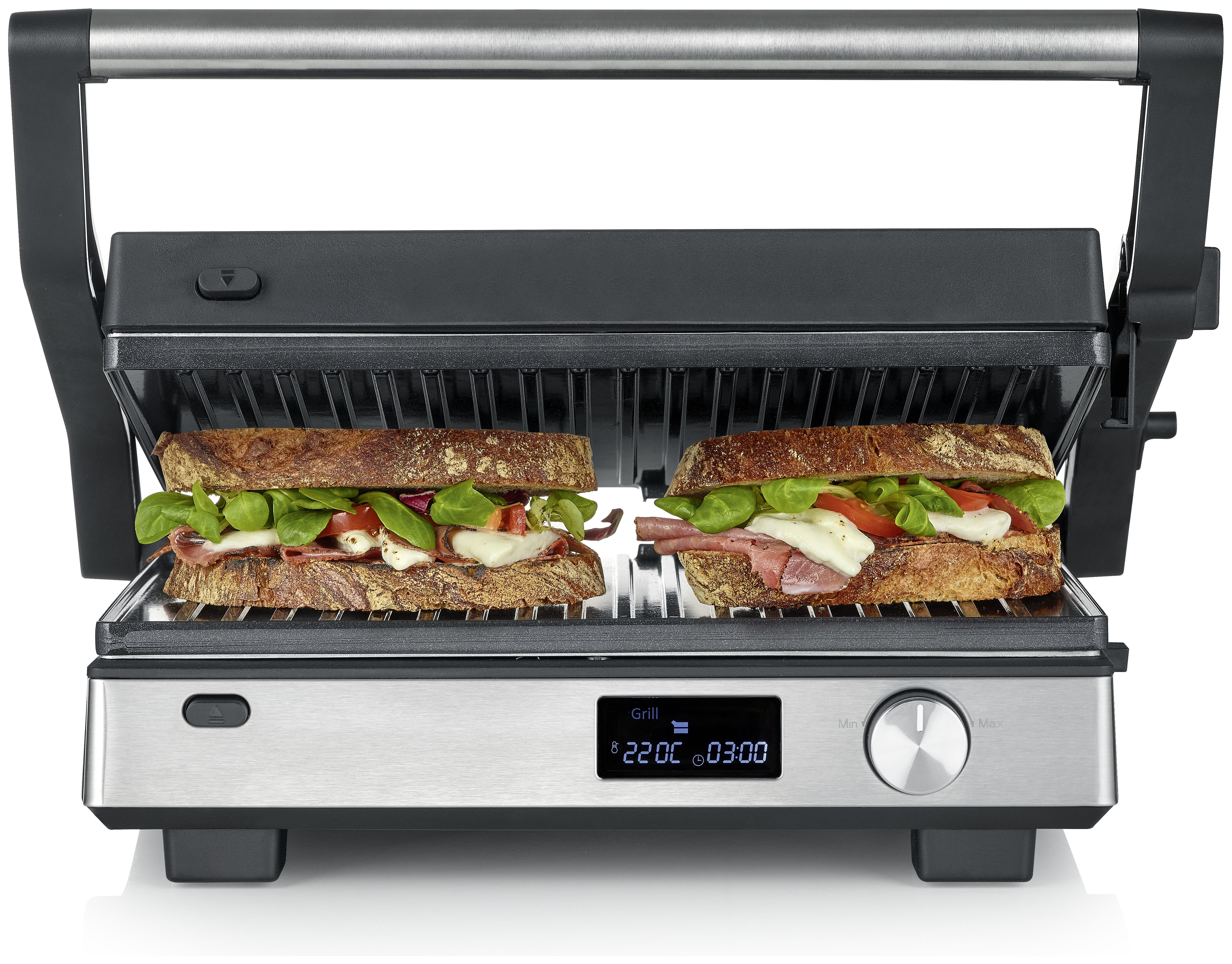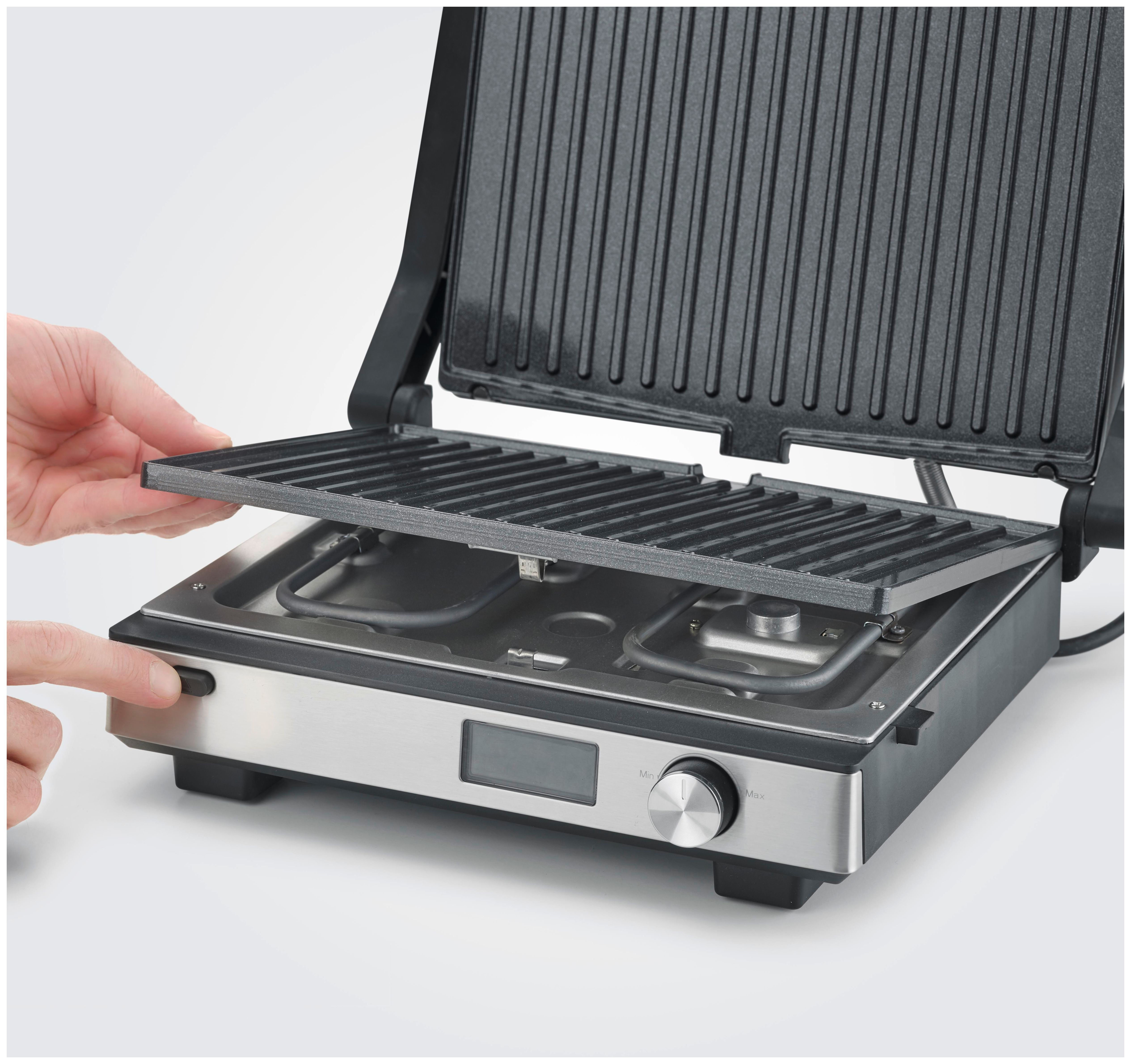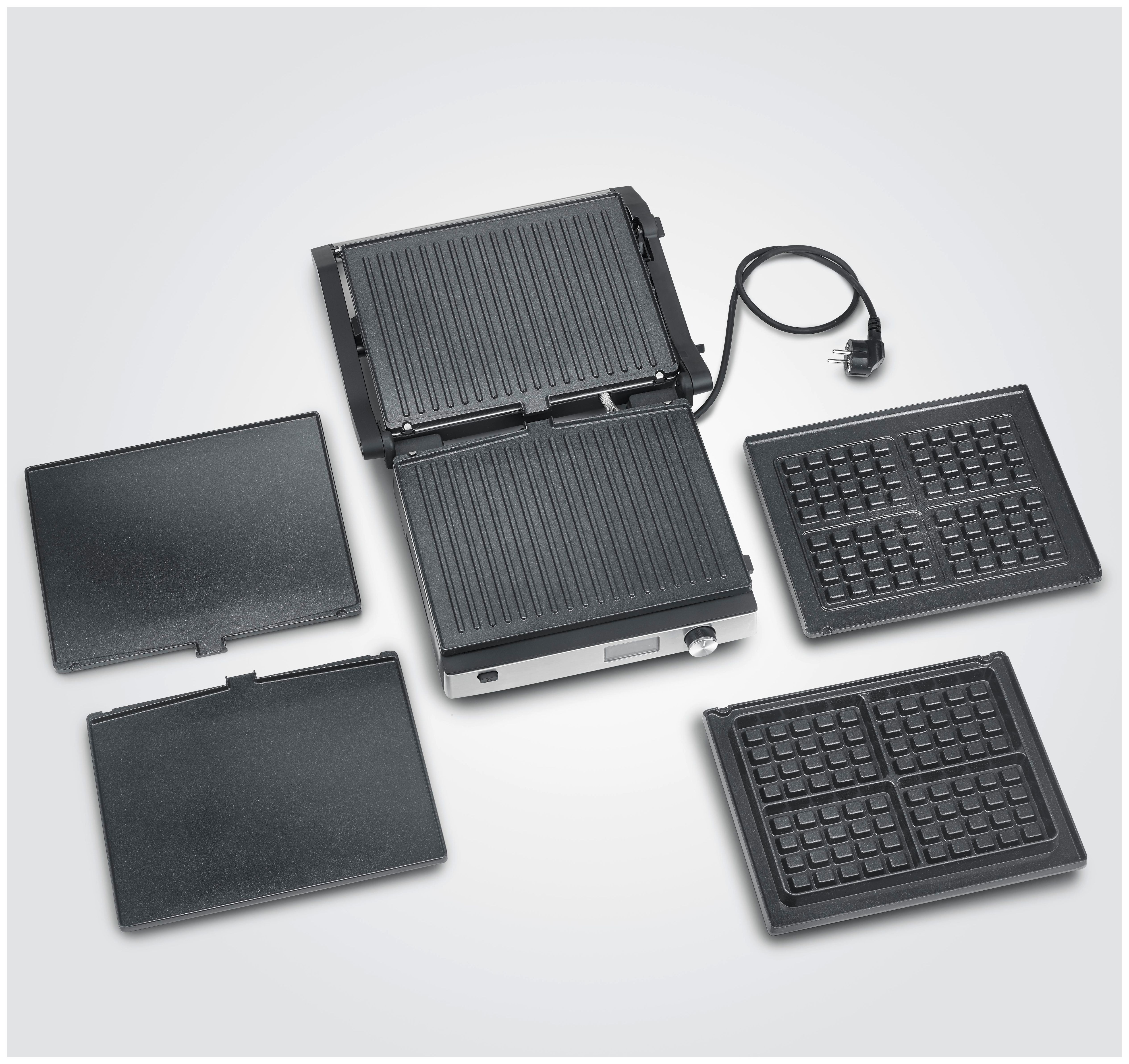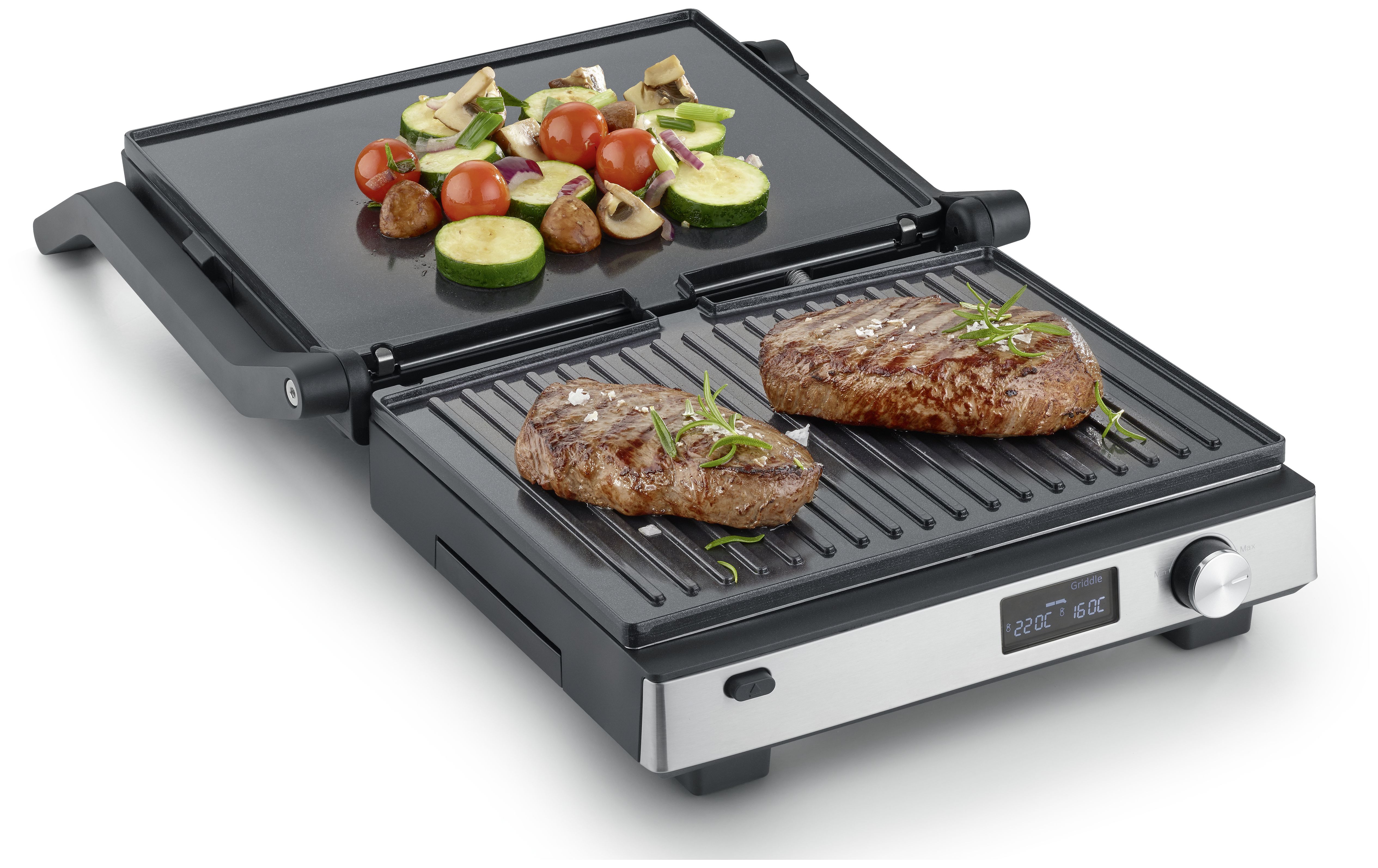 Mit vordefinierten Programmen und stufenloser Temperaturregelung gelingt dir jedes Gericht punktgenau – vom knusprigen Steak über zartes Gemüse bis zu fluffigen Waffeln. Die spülmaschinengeeigneten Platten lassen sich im Handumdrehen wechseln und reinigen.