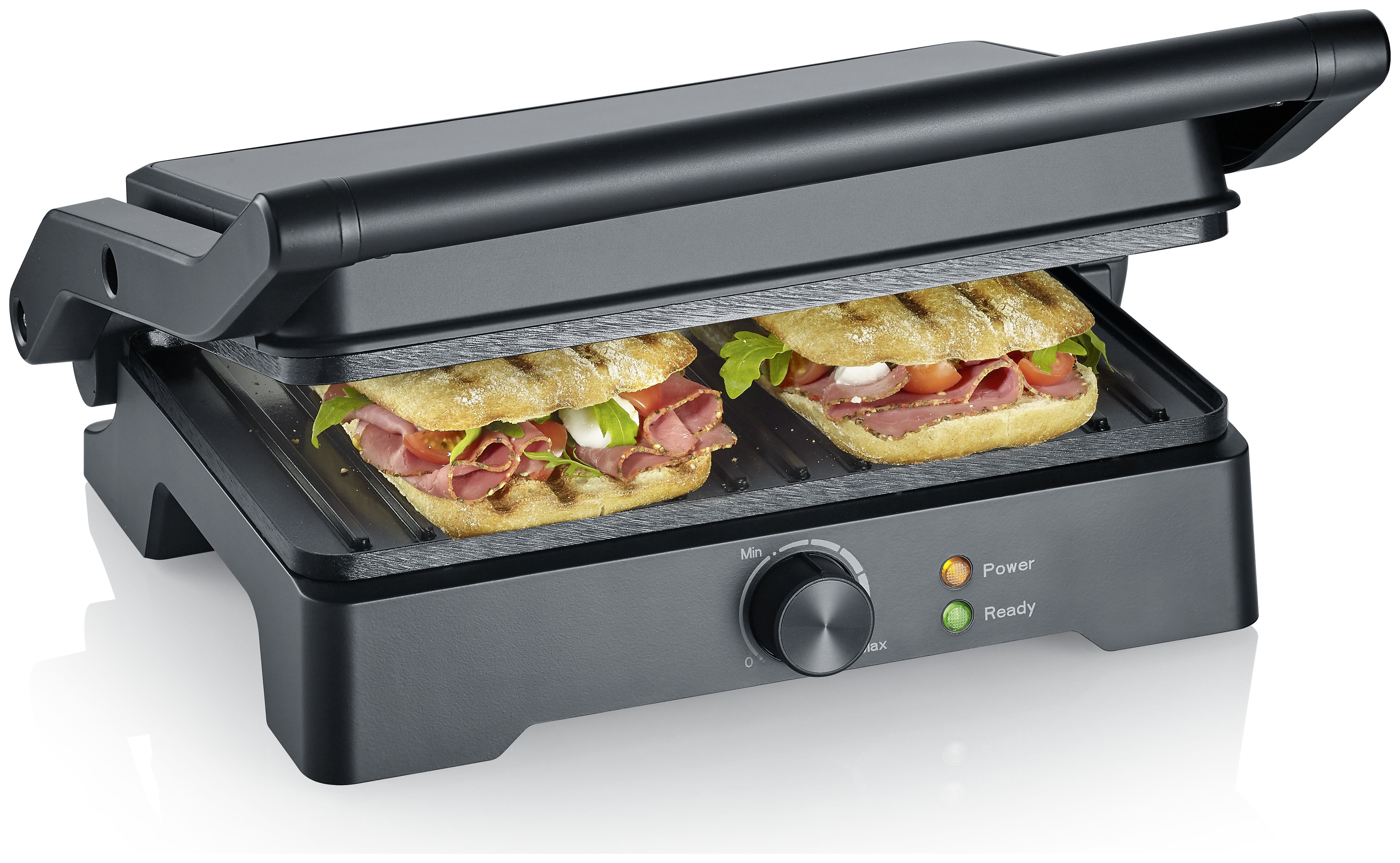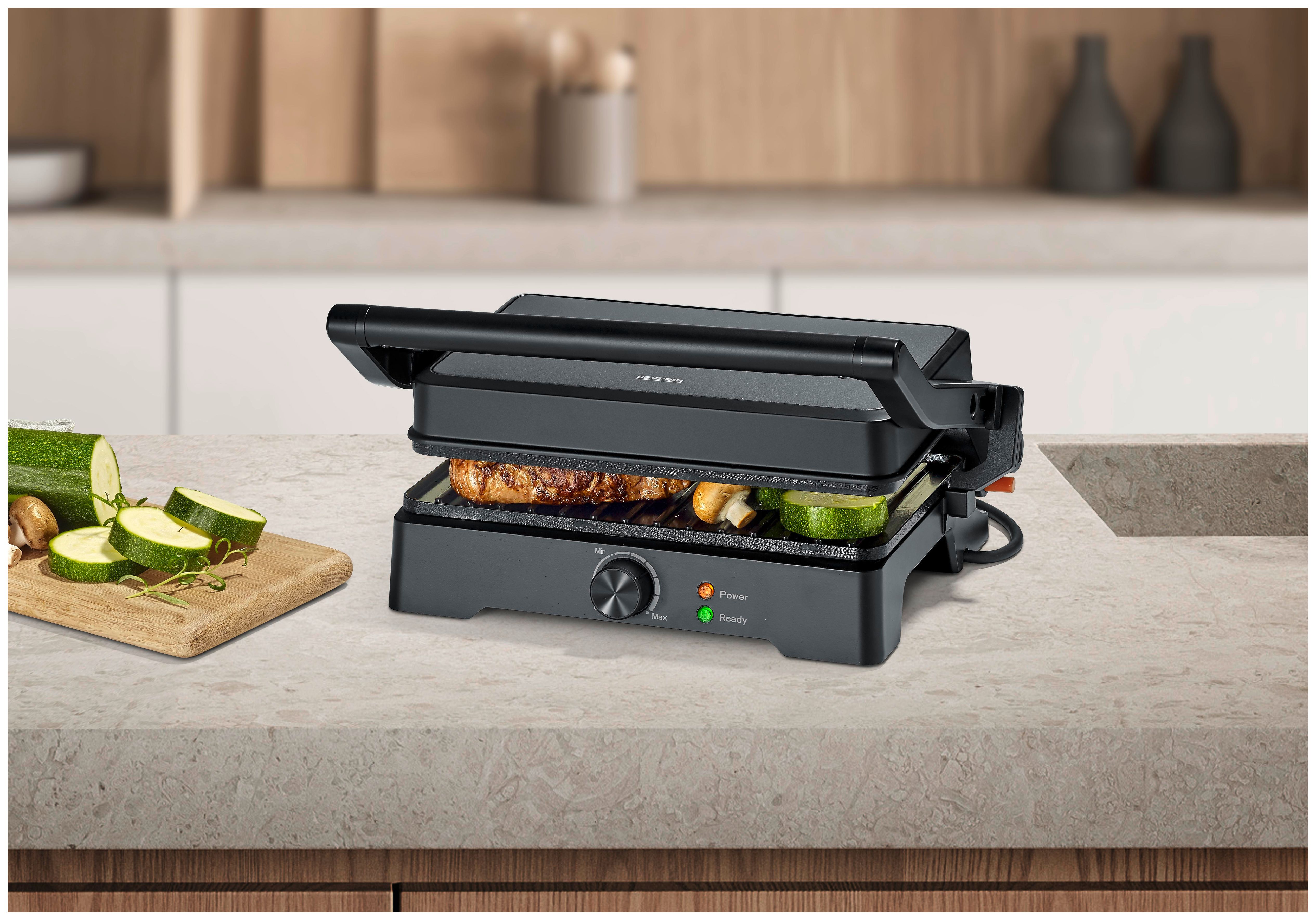 Dank aufklappbarer Grillfläche ist der Kontaktgrill auch als Tischgrill nutzbar. So passt gleich doppelt so viel Grillgut auf die Fläche. Zum schnellen Überbacken kannst du den Deckel des Grills auf variabler Höhe arretieren und deinen Käse schmelzen lassen, ohne dass er in Kontakt mit dem Grill kommt.