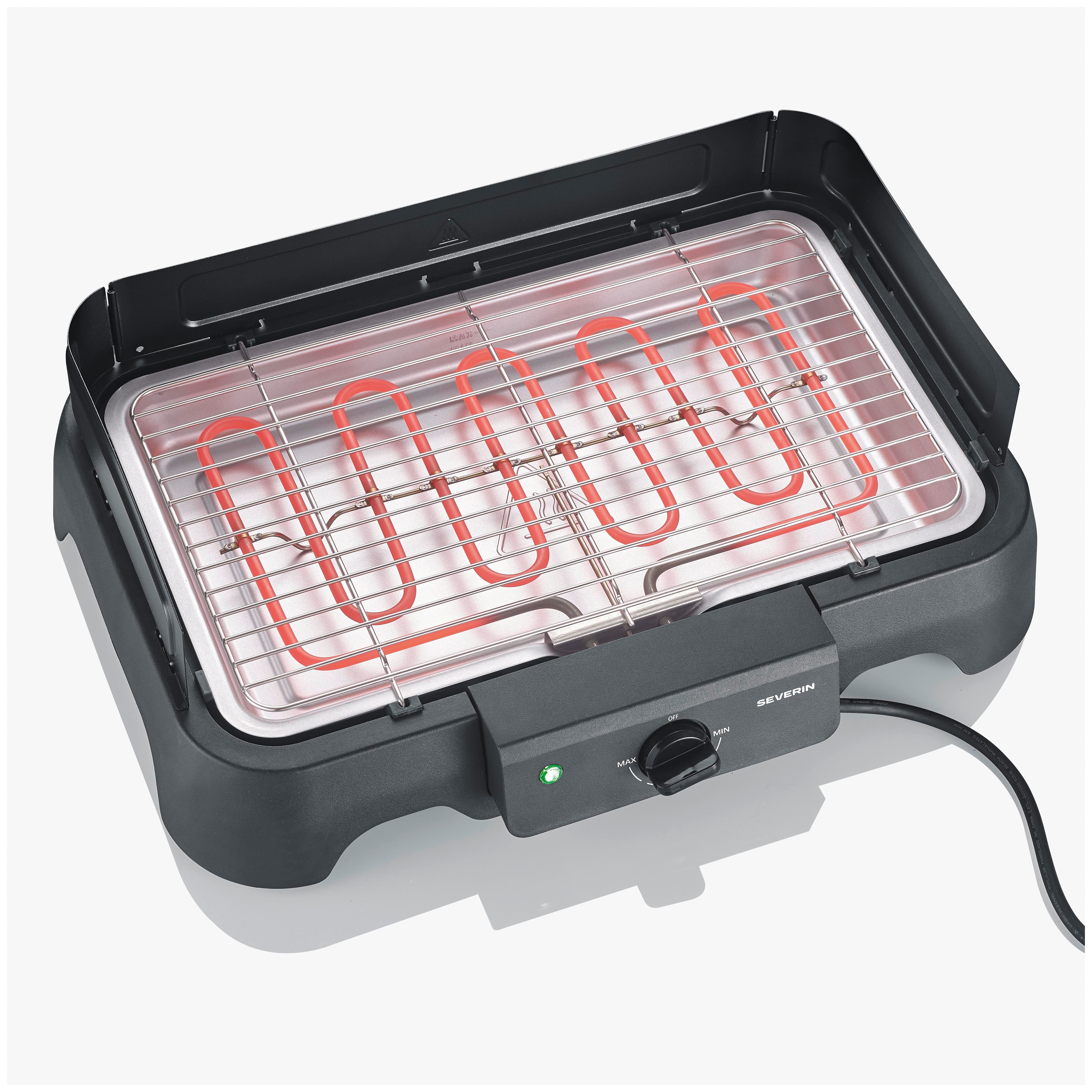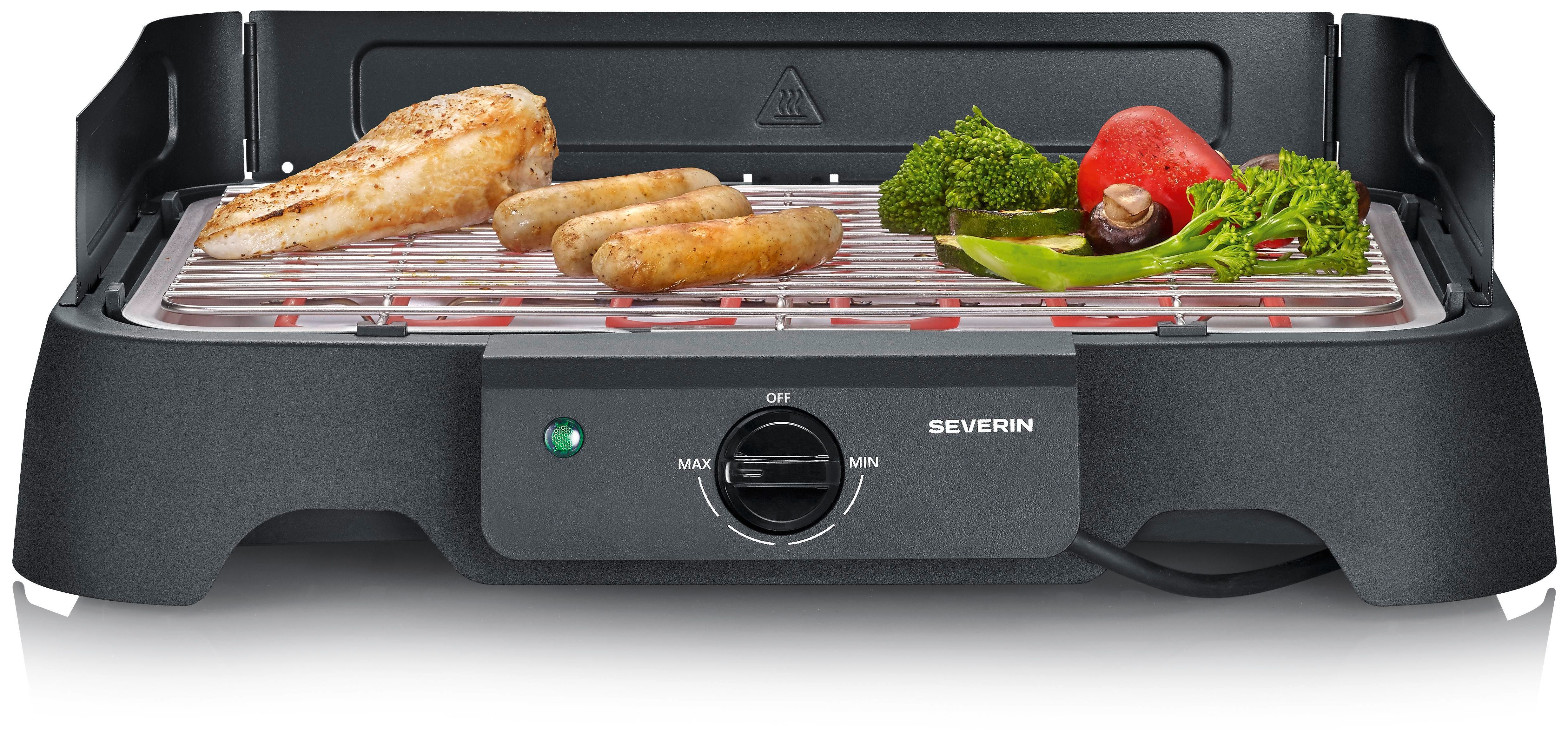 Elektrischer BBQ Tischgrill mit Grillrost, 2000 Watt, 38x22 cm, 35 - 200 °C, schwarz / Kunststoff