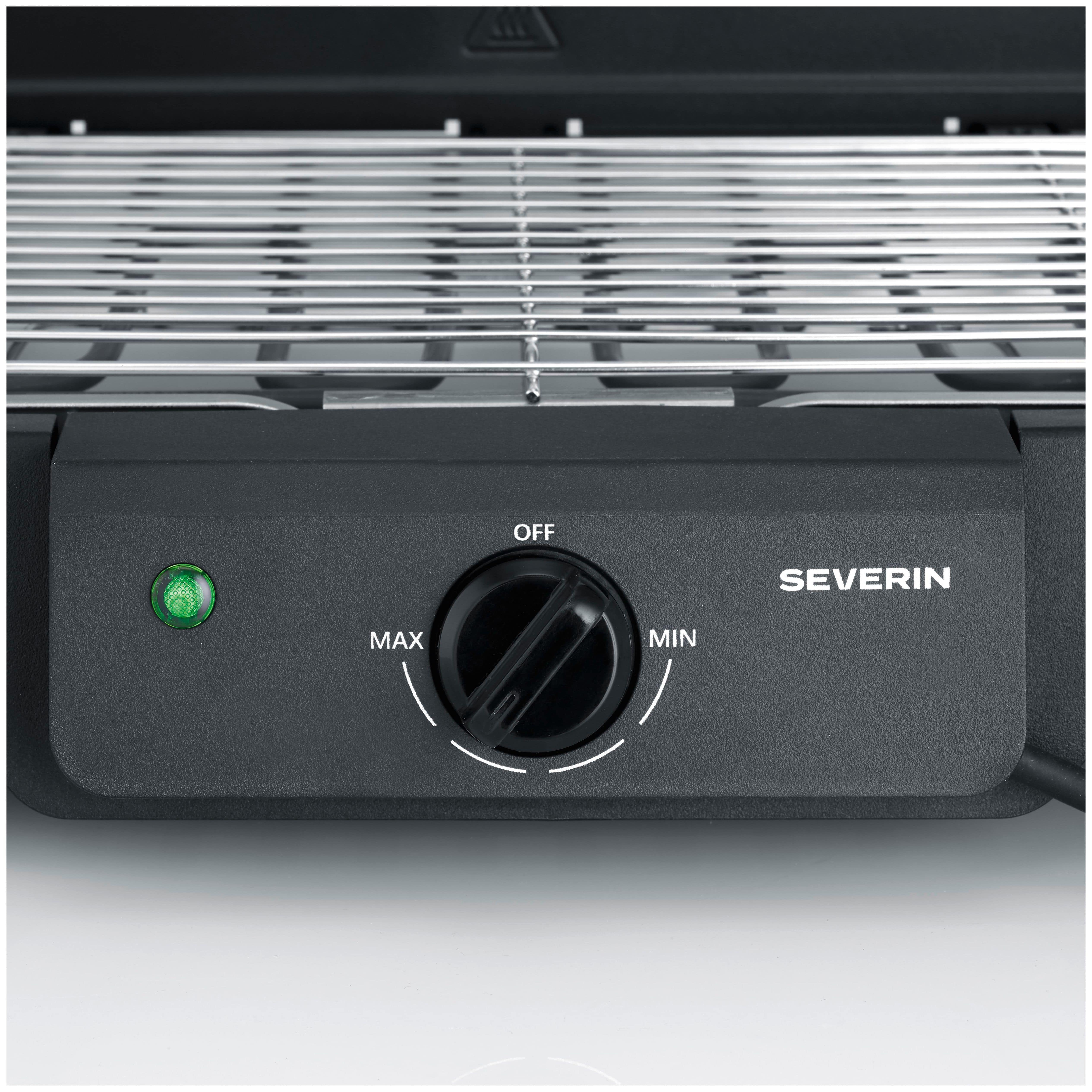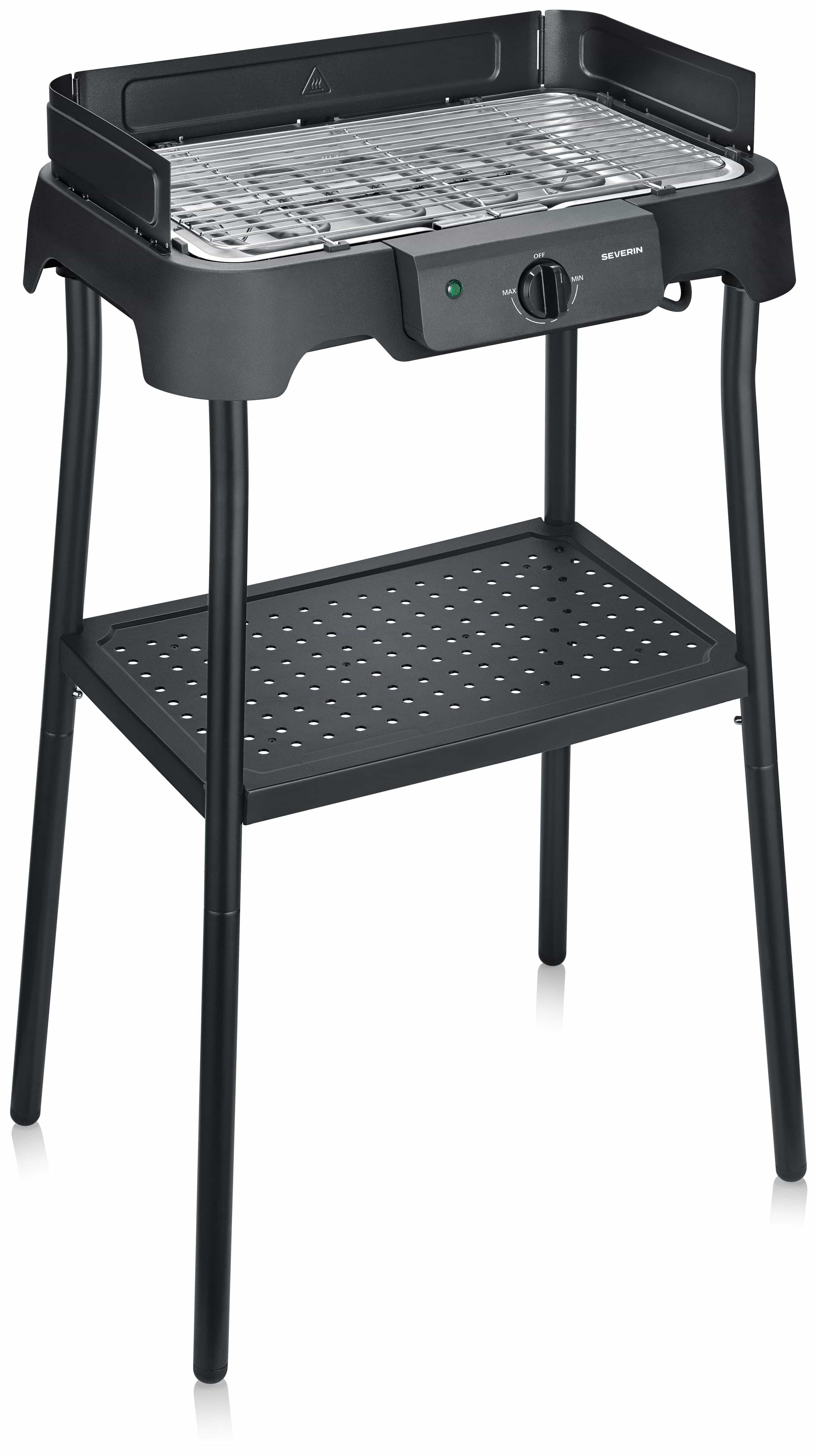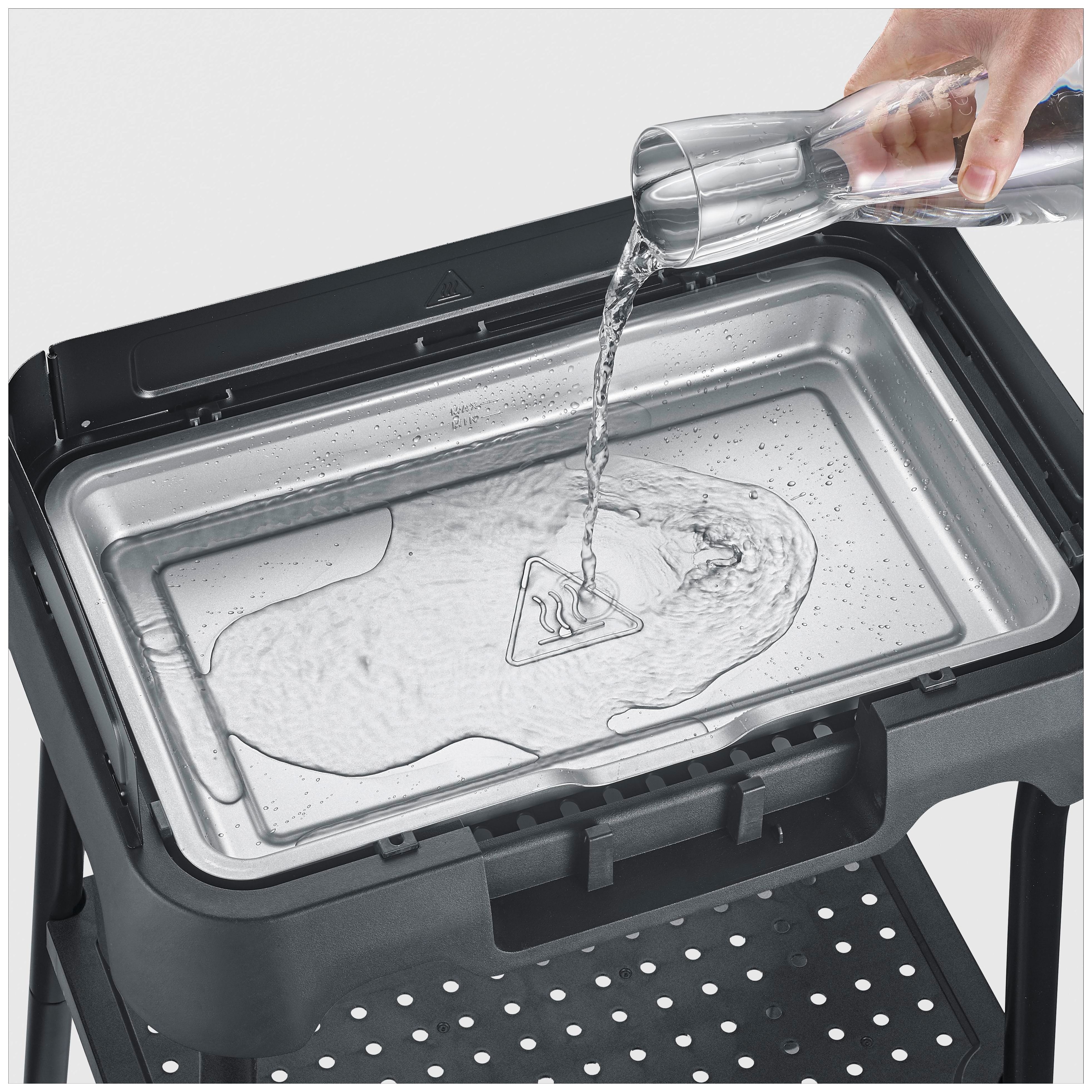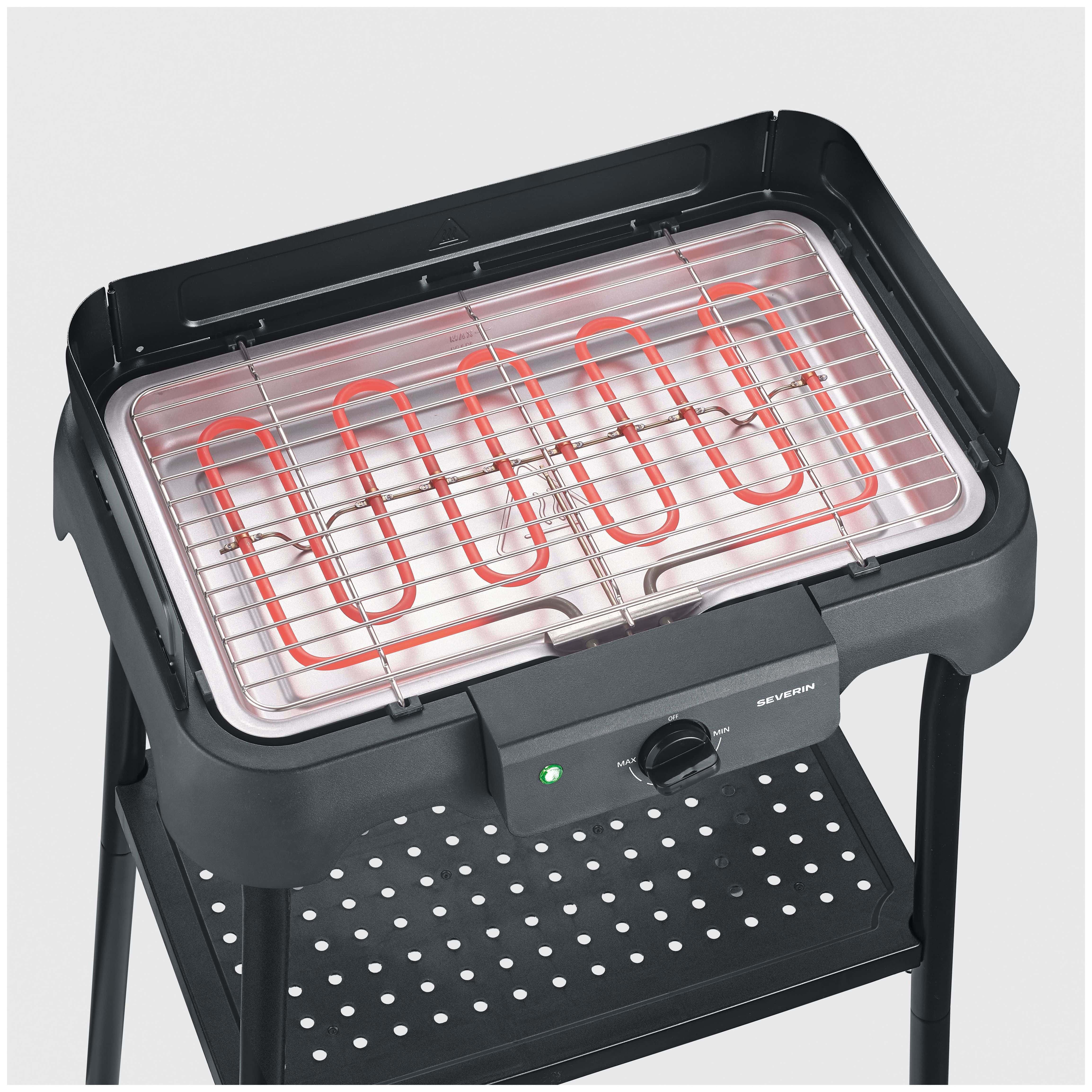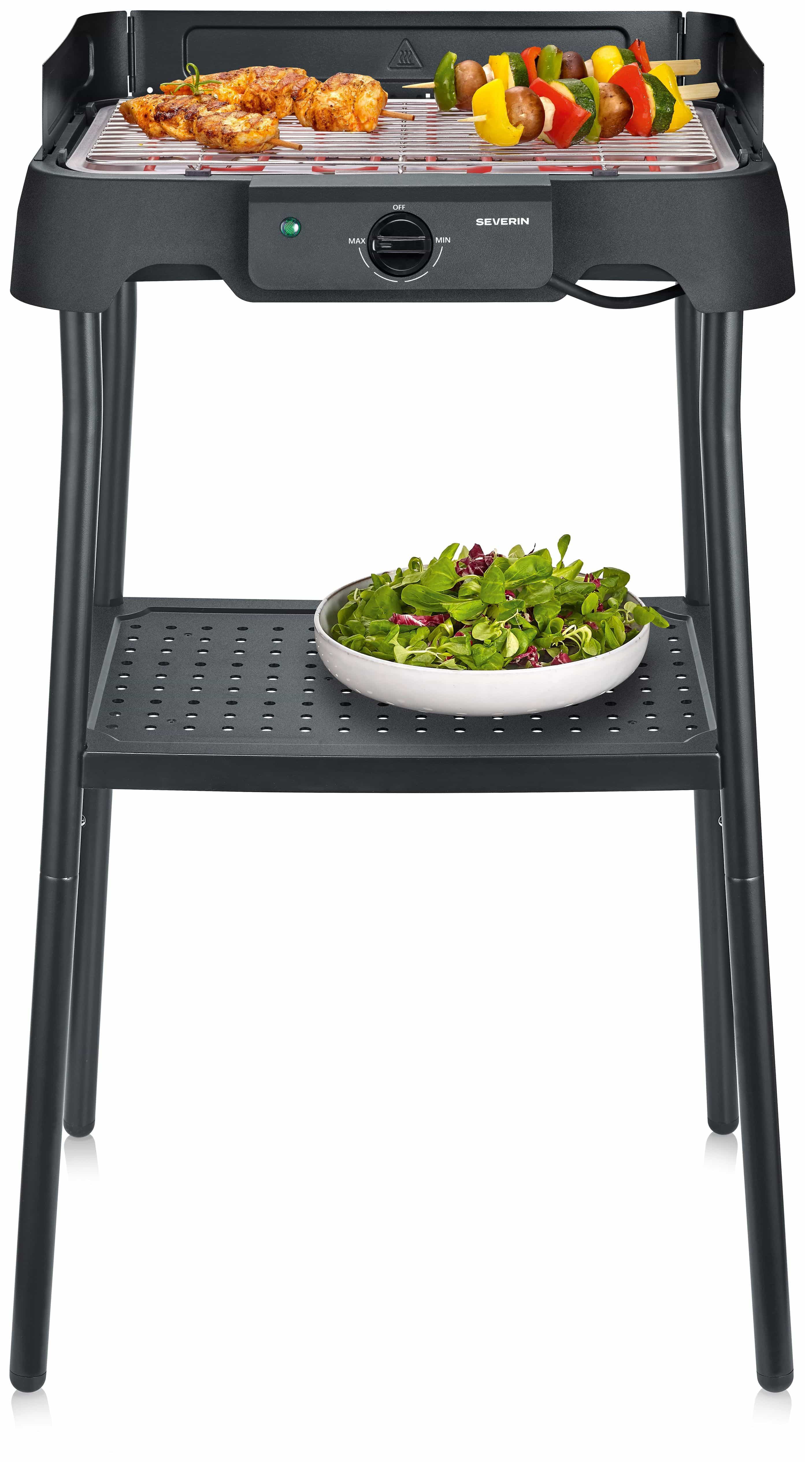 Elektrischer BBQ Tischgrill mit Grillrost und Standfuß, 2000 Watt, 38x22 cm, 35 - 200 °C, schwarz / Kunststoff