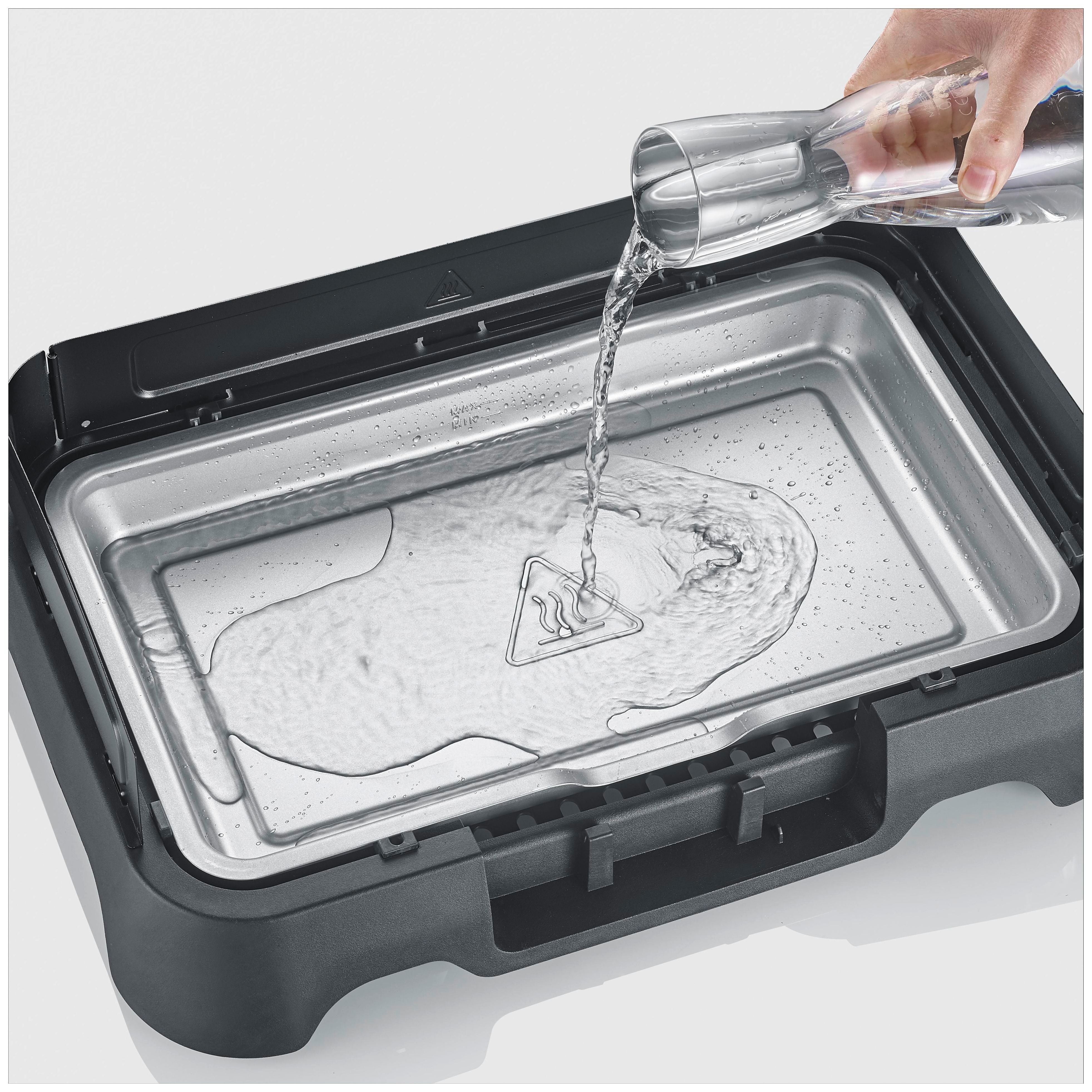 Tischgrill mit aluminium Grillplatte, 2000 Watt, 39x23 cm, 40 - 220 °C, schwarz / Kunststoff