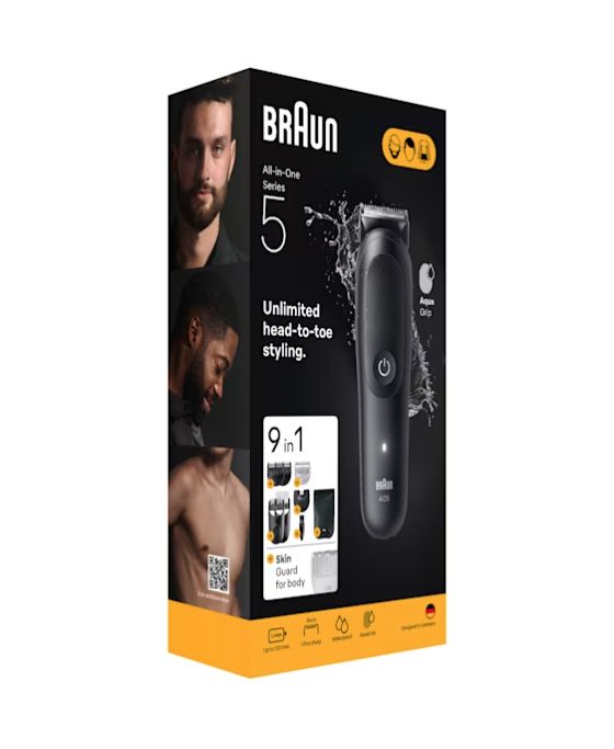 Grenzenloses Styling von Kopf bis Fuß: Das 11-in-1 All-in-One Set von Braun enthält ausgewählte Tools zum Trimmen des Barts, zum Haareschneiden und Bodygrooming.
