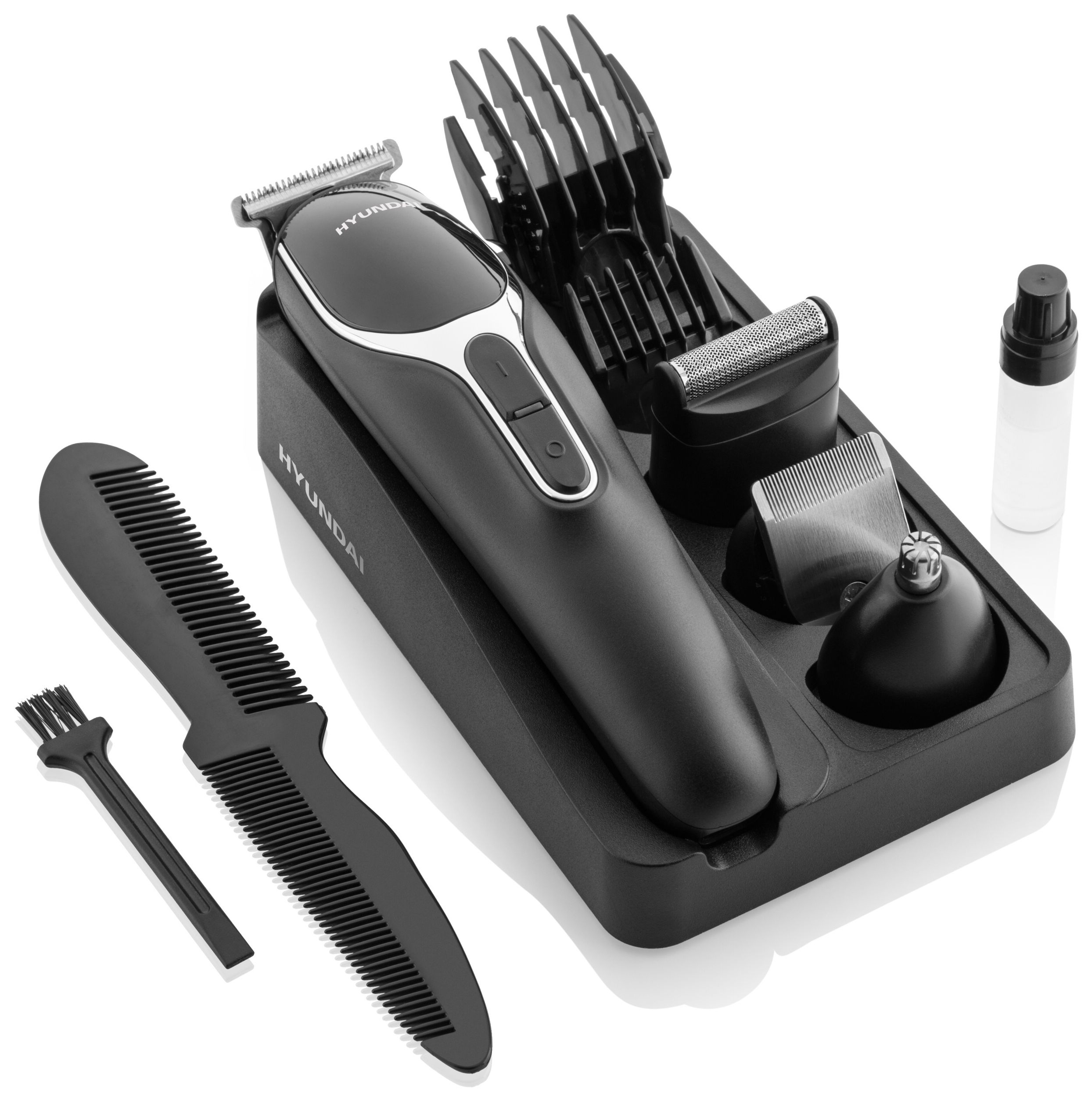 Der Mehrzweck-Haarschneider Hyundai HC 800 eignet sich perfekt zum Trimmen von Bart-, Haar-, Ohr- und Nasenhaaren. Es hat eine praktische Form und ein einzigartiges Design, das eine sichere Handhabung beim Schneiden ermöglicht.
