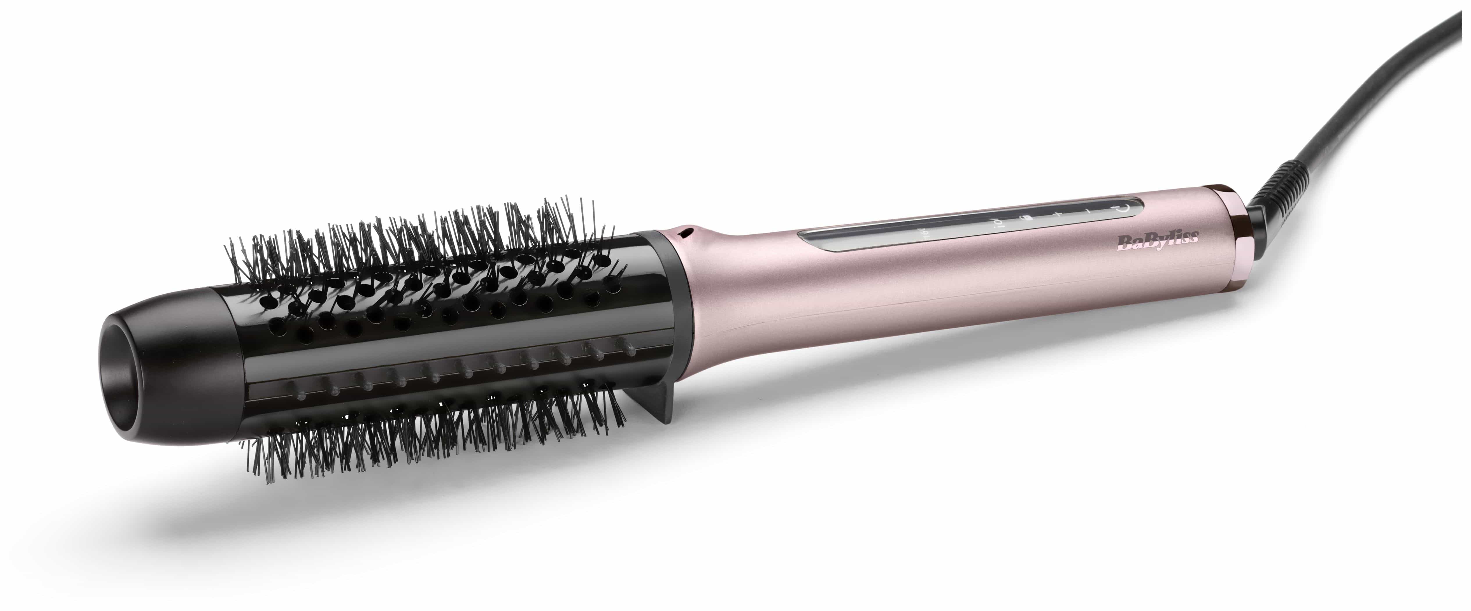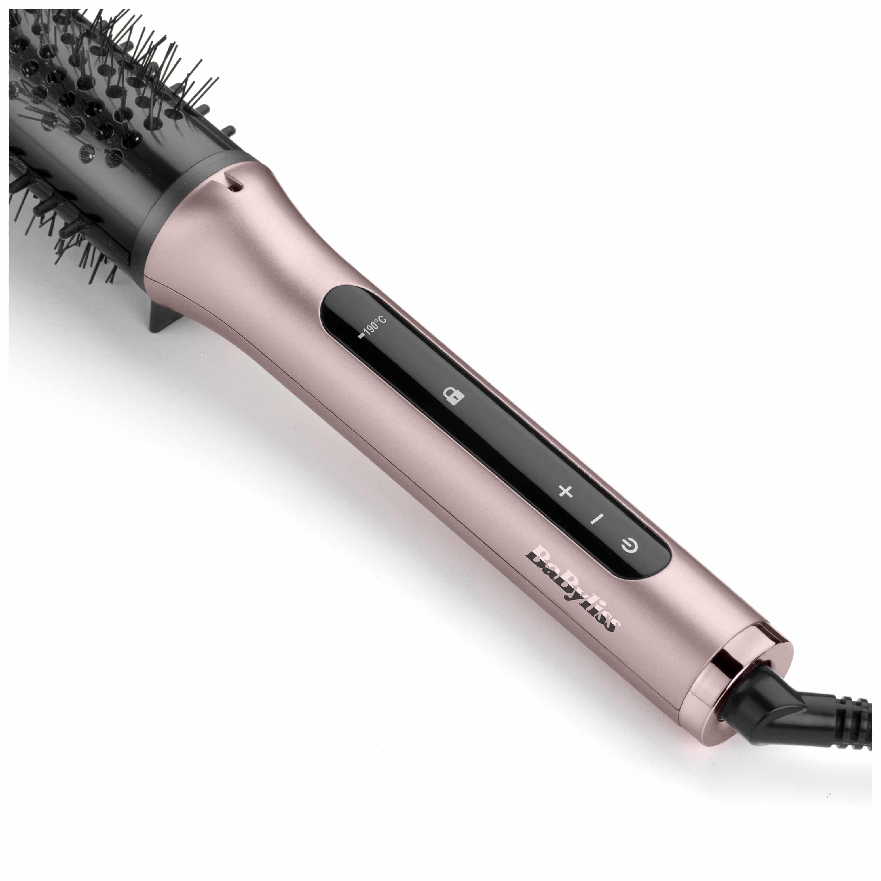 BaByliss HSB200E. Typ: Lockenbürste, Technologie: Warm, Steuerung: Berührung. Produktfarbe: Pink, Ursprungsland: China. Kabellänge: 1,8 m, Display-Typ: LED, Automatische Abschaltung nach: 60 min. Leistung: 96 W, Energiequelle: AC. Breite: 305 mm, Tiefe: 45 mm, Höhe: 45 mm