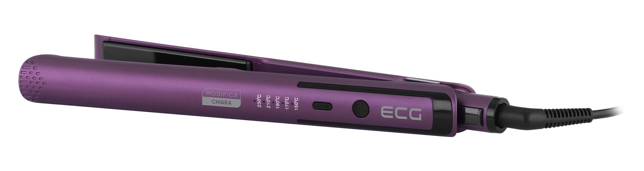 Das ECG Modifica Straight Chiara Glätteisen besticht nicht nur durch sein modernes lila Design, sondern auch durch eine Reihe praktischer Details. So ist das Kabel beispielsweise mit einem drehbaren Ende ausgestattet und hat eine Länge von 1,8 Metern – das gibt Ihnen beim Stylen ausreichend Bewegungsfreiheit. Kurz gesagt: Mit diesem Glätteisen können Sie Ihr Haar spielend leicht professionell pflegen und perfekt stylen – jederzeit und überall.