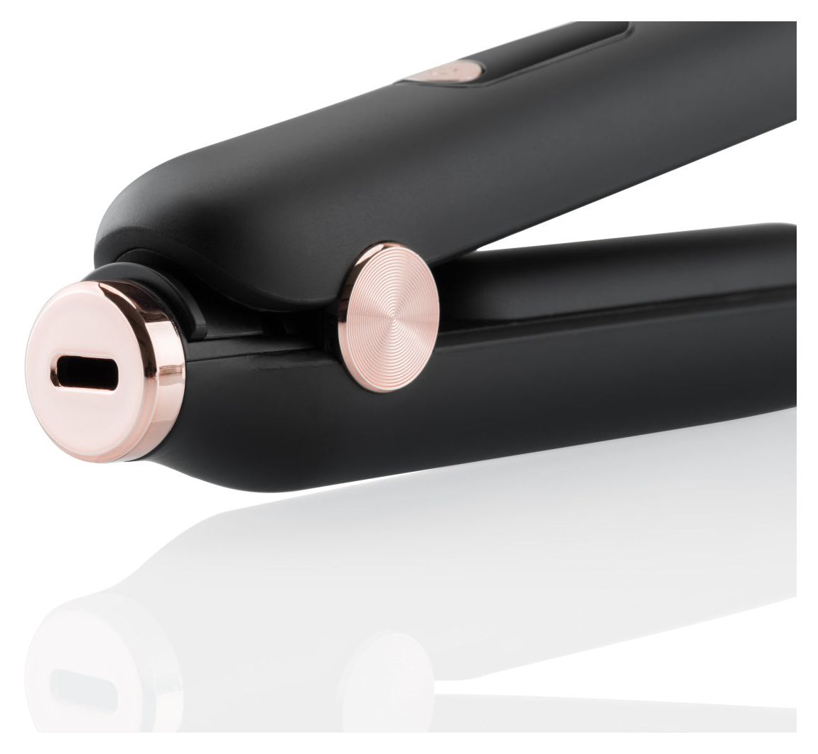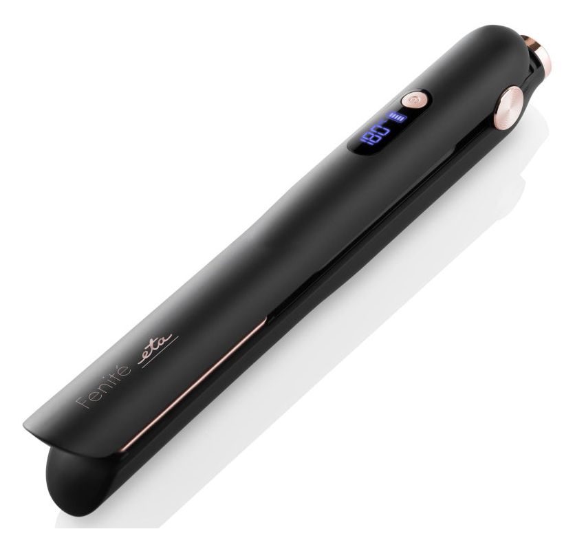 Eta Fenité 8333 90000. Typ: Glätteisen, Technologie: Warm, Steuerung: Tasten. Produktfarbe: Schwarz, Plattenmaterial: Keramik. Display-Typ: LED, Automatische Abschaltung nach: 15 min. Energiequelle: Akku, Akku-/Batterietechnologie: Lithium-Ion (Li-Ion), Akku-/Batterietyp: Eingebaut. Breite: 235 mm, Tiefe: 30 mm, Höhe: 40 mm