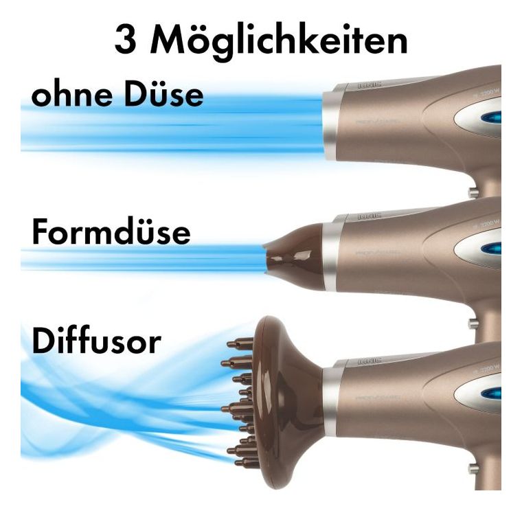 Erleben Sie mit unserem leistungsstarken 2200-Watt-Profi-Haartrockner eine Welt voller faszinierender Stylingmöglichkeiten und strahlender Schönheit! Verwandeln Sie Ihr Haar in ein geschmeidiges, glänzendes Kunstwerk, indem Sie die revolutionäre Ionisierungsfunktion zuschalten, die Ihr Haar vor statischer Aufladung schützt und es vor dem Austrocknen bewahrt.
