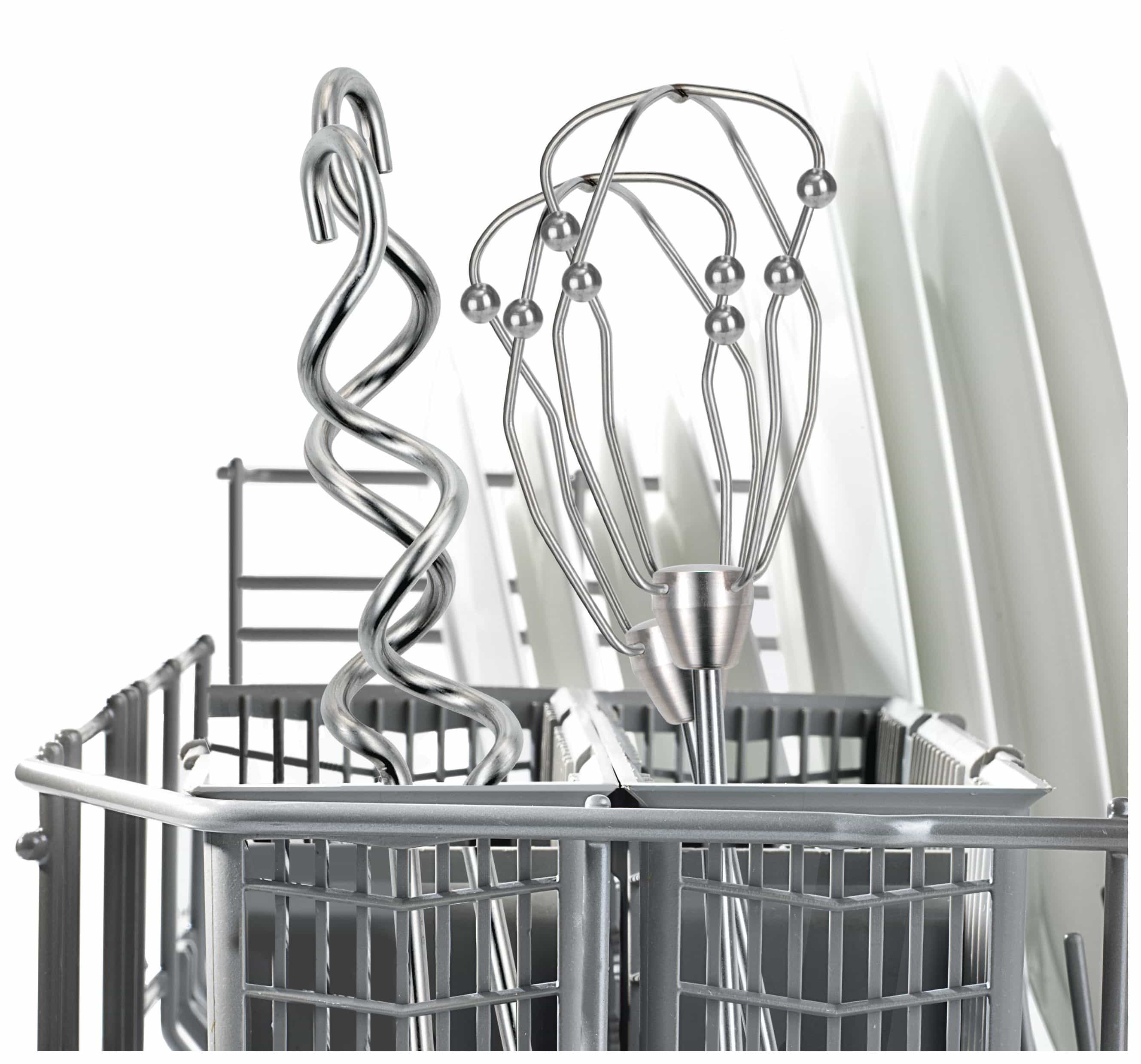 - Separate Auswurftaste für Rührbesen und