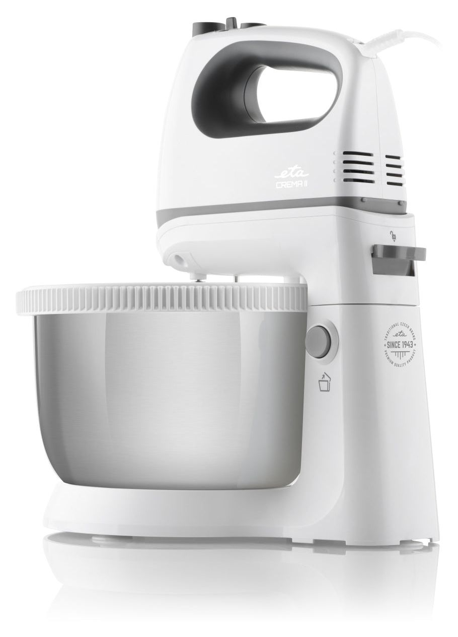 Eta ETA205290000. Typ: Handmixer, Produktfarbe: Grau, Weiß, Mixerfunktionen: Kneten, Mixen. Schüsselmaterial: Edelstahl. Leistung: 400 W. Breite: 195 mm, Tiefe: 85 mm, Höhe: 320 mm. Verpackungsbreite: 295 mm, Verpackungstiefe: 230 mm, Verpackungshöhe: 235 mm