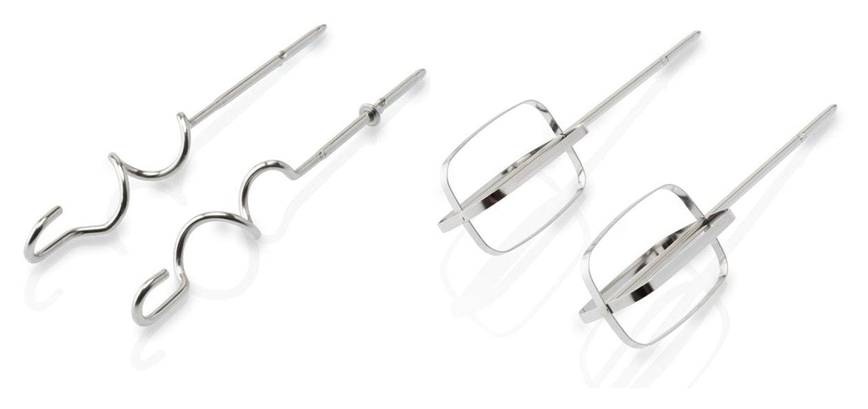 Das Zubehör umfasst 2 Schneebesen und 2 Knethaken, mit denen Sie großartige cremige Suppen, Soßen, Pürees oder sogar selbst gemachte Brötchen zubereiten können. Die Aufsätze sind leicht anzubringen. Und mit einem Knopfdruck lassen sie sich einfach und bequem wieder lösen.