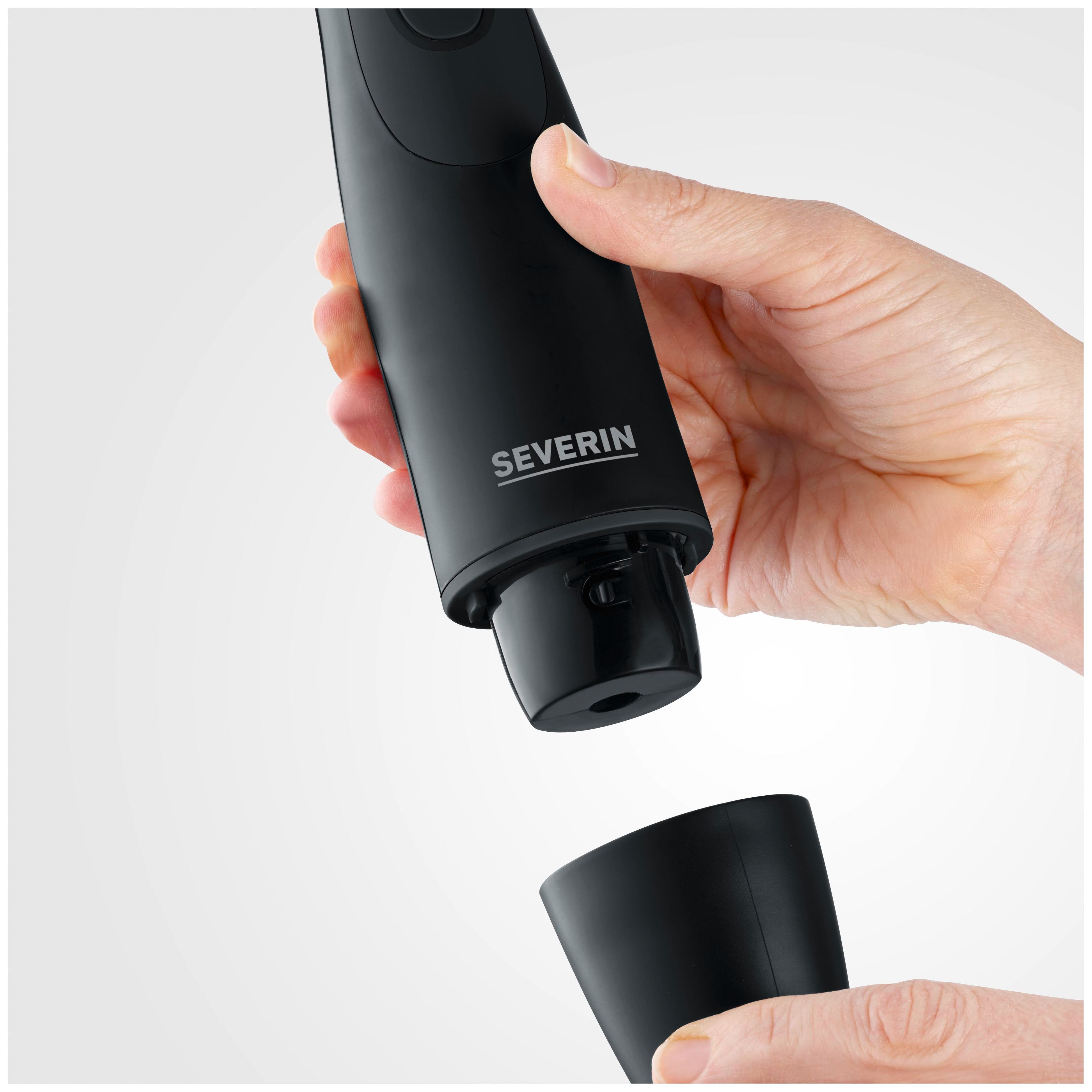 Severin SM 3761. Typ: Pürierstab, Produktfarbe: Schwarz, Kabellänge: 1 m. Schüsselkapazität: 0,7 l. Gehäusematerial: Kunststoff. Leistung: 350 W, Energiequelle: AC. Breite: 62 mm, Tiefe: 62 mm, Höhe: 380 mm