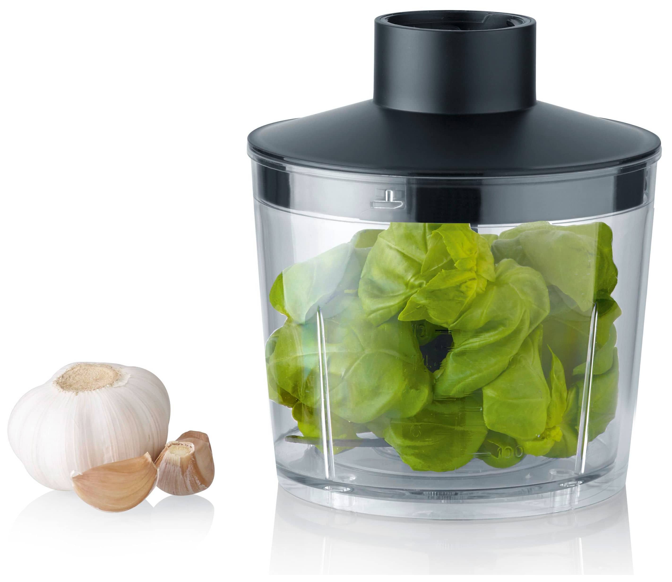 Severin SM 3762. Typ: Pürierstab, Produktfarbe: Schwarz, Kabellänge: 1 m. Schüsselkapazität: 0,7 l. Gehäusematerial: Kunststoff. Leistung: 350 W, Energiequelle: AC. Breite: 62 mm, Tiefe: 62 mm, Höhe: 380 mm