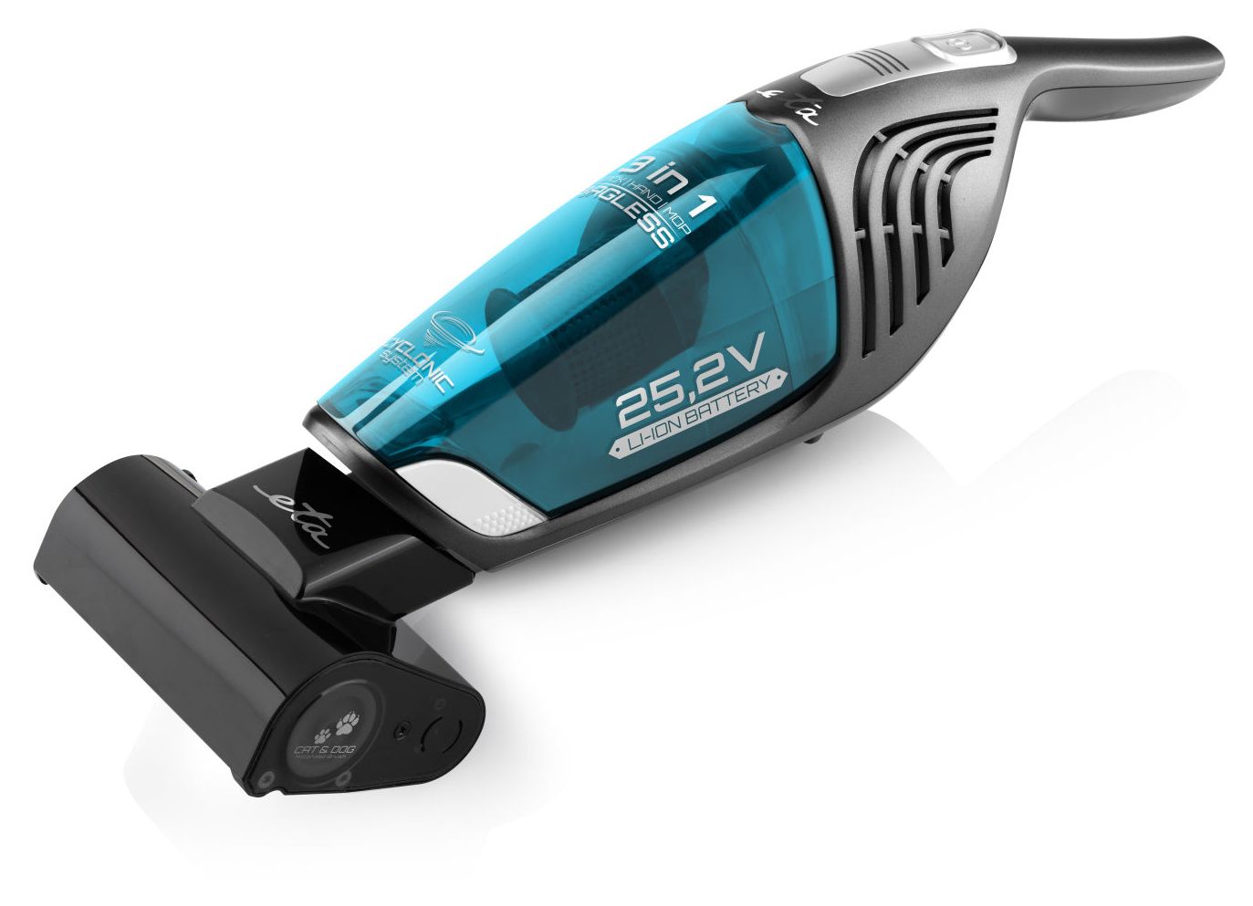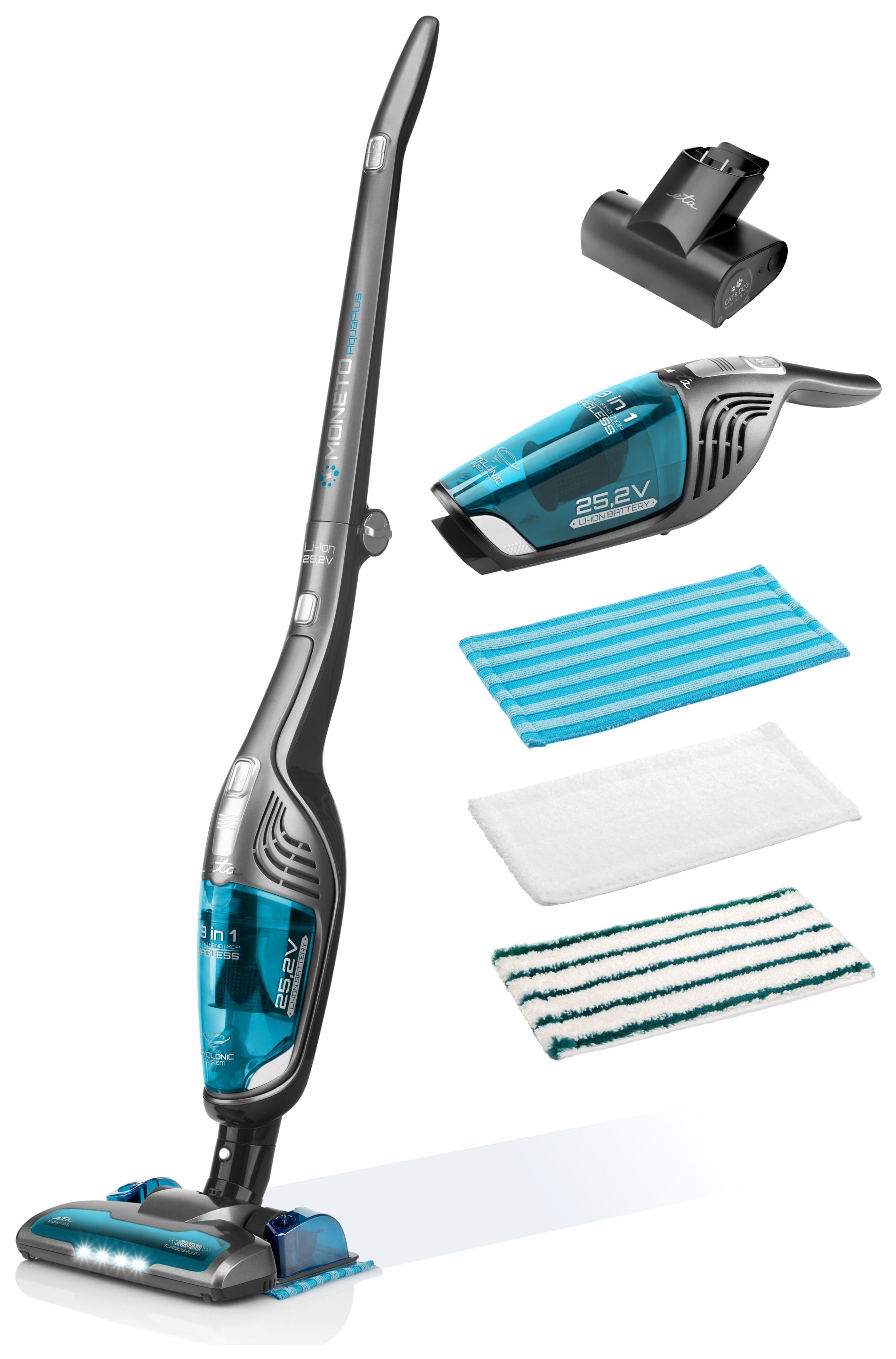 Moneto II Aqua Plus Handstaubsauger Beutellos bis 50 min Laufzeit 25,2 V HEPA (Blau, Grau)