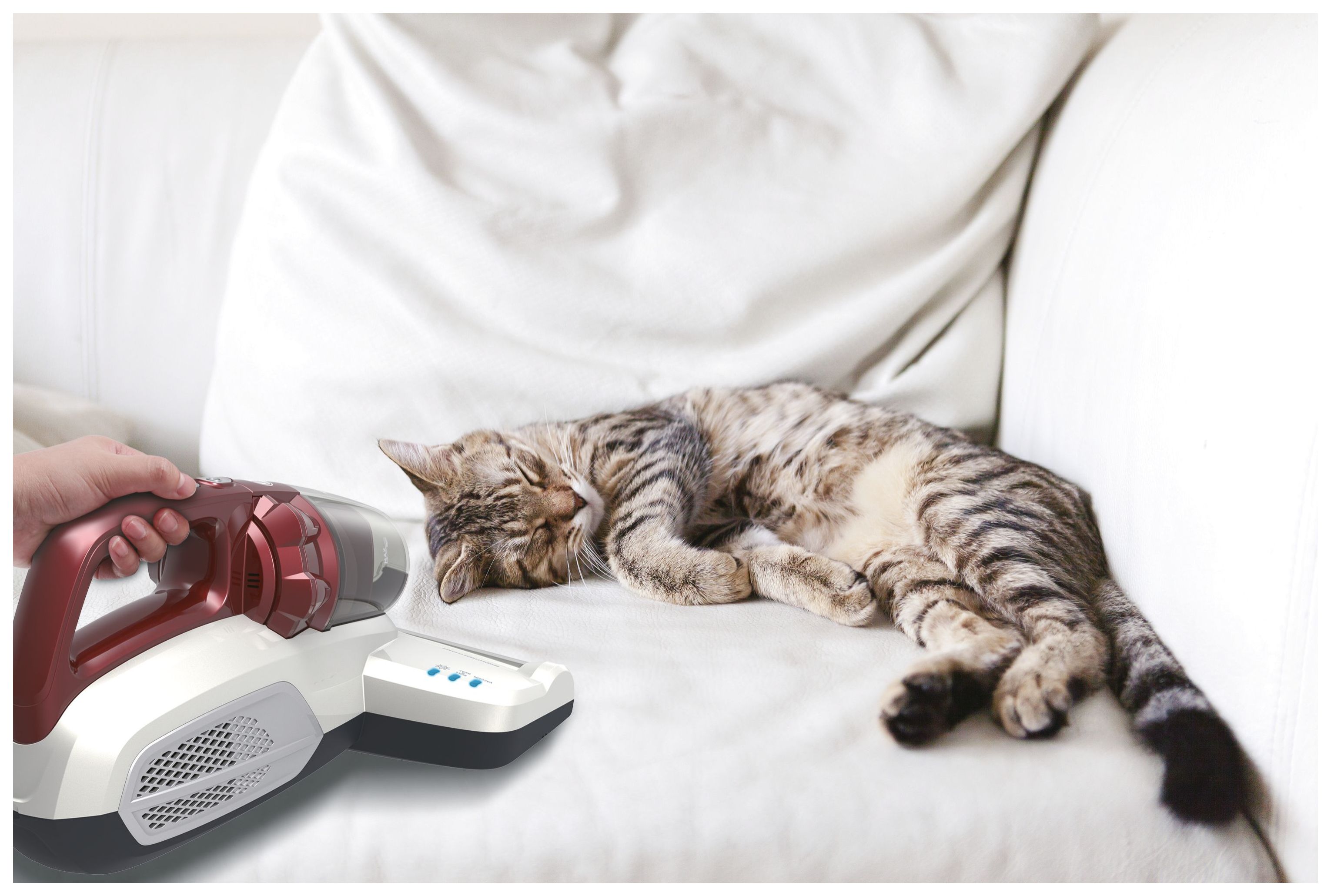 Der Ultra Vortex Matratzenreiniger kann Allergene, Staub und Staubmilben aus Ihrem Bett und von weichen Textilien, wie Kissen, Polstern und Sofas, entfernen. Es ist ideal für Allergiker.