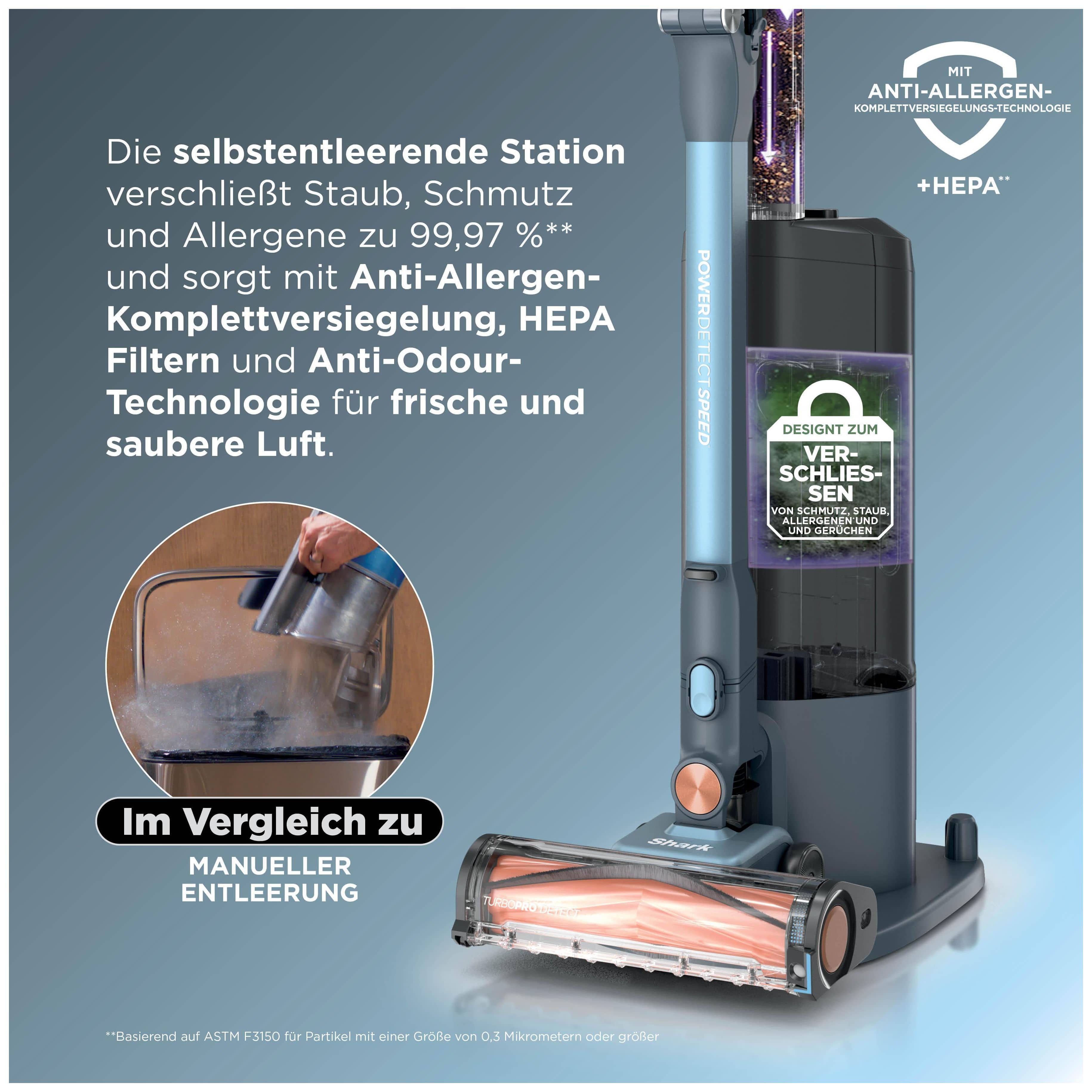 PowerDetect Speed Pet Pro Clean & Empty Akku-Staubsauger, 350 W, 60 min, HEPA, Eisblau