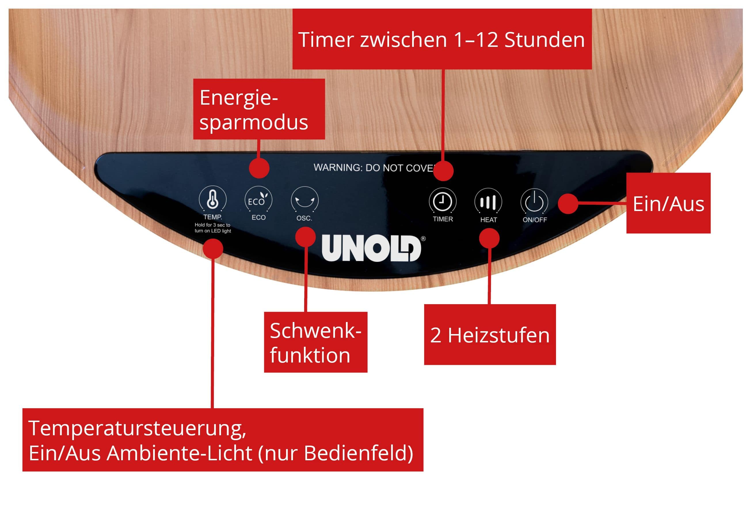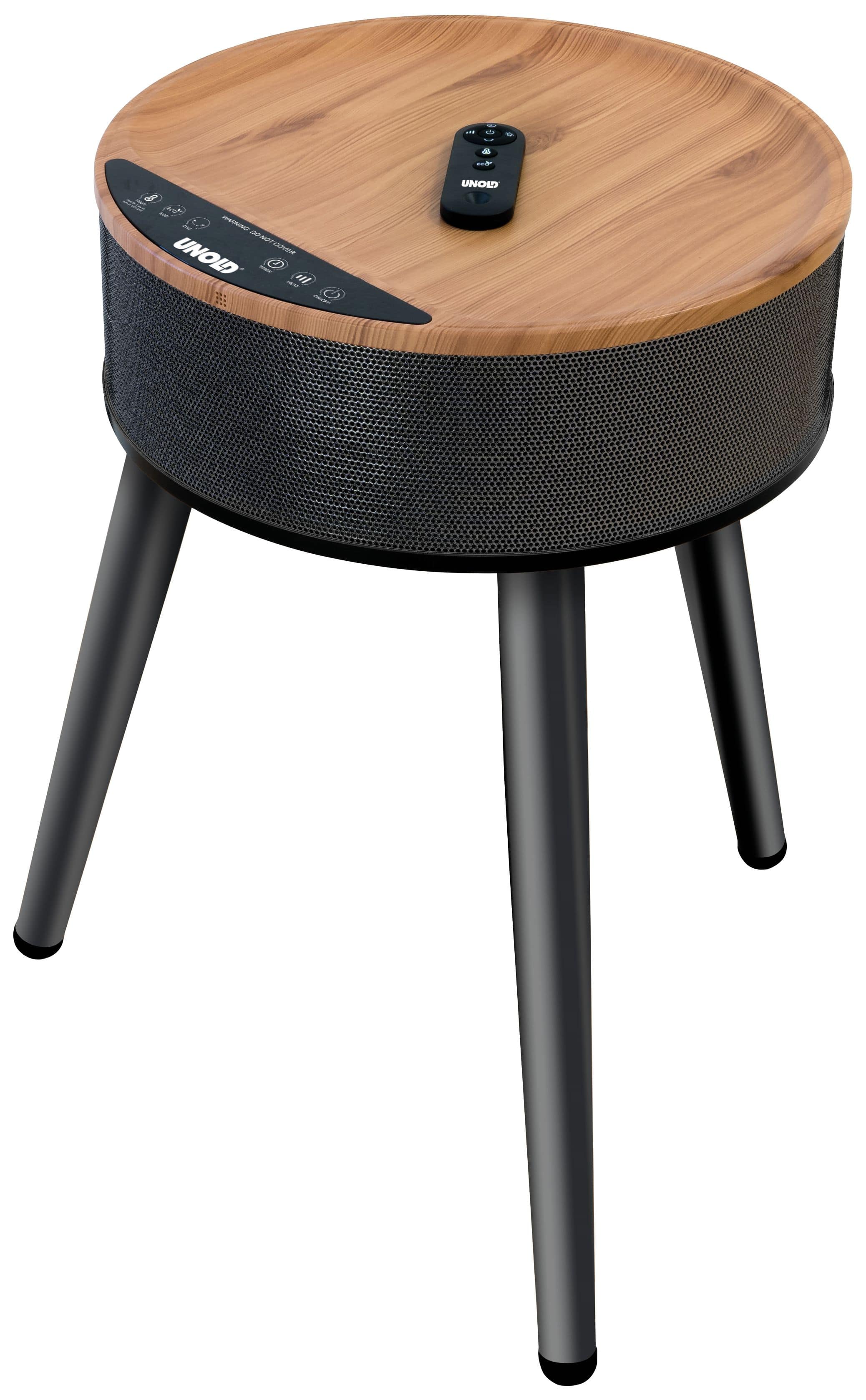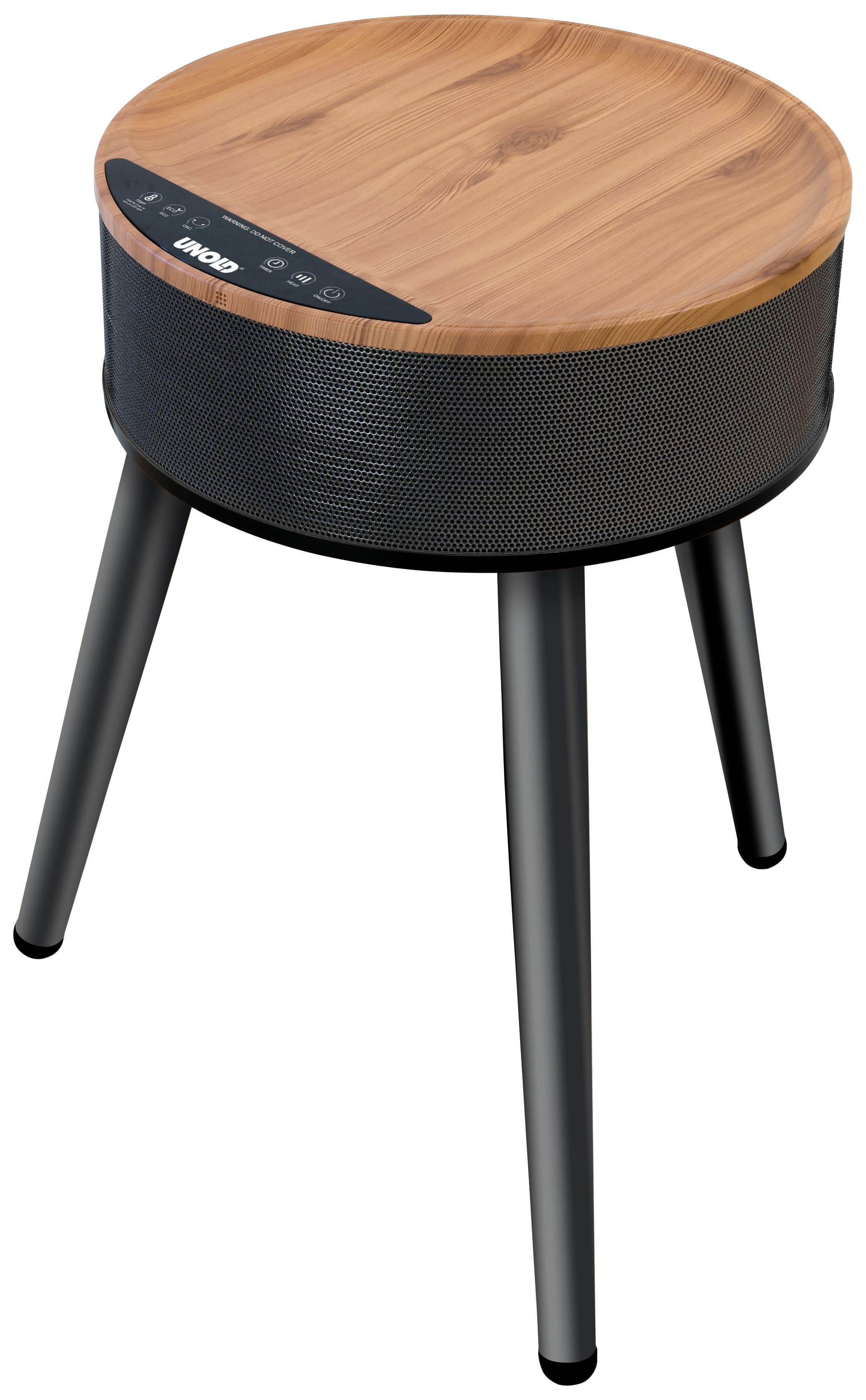 Unold HEIZLÜFTERTISCH Henry 86545. Typ: Elektrischer Raumheizlüfter, Heizelement Typ: Keramik, Kabellänge: 1,2 m. Geeignet für: Drinnen, Produktfarbe: Schwarz, Holz, Gehäusematerial: Kunststoff. Geeignet für Räume bis zu: 30 m². Leistung: 2000 W, AC Eingangsspannung: 220-240 V, AC Eingangsfrequenz: 50-60 Hz. Breite: 465 mm, Tiefe: 492 mm, Höhe: 610 mm