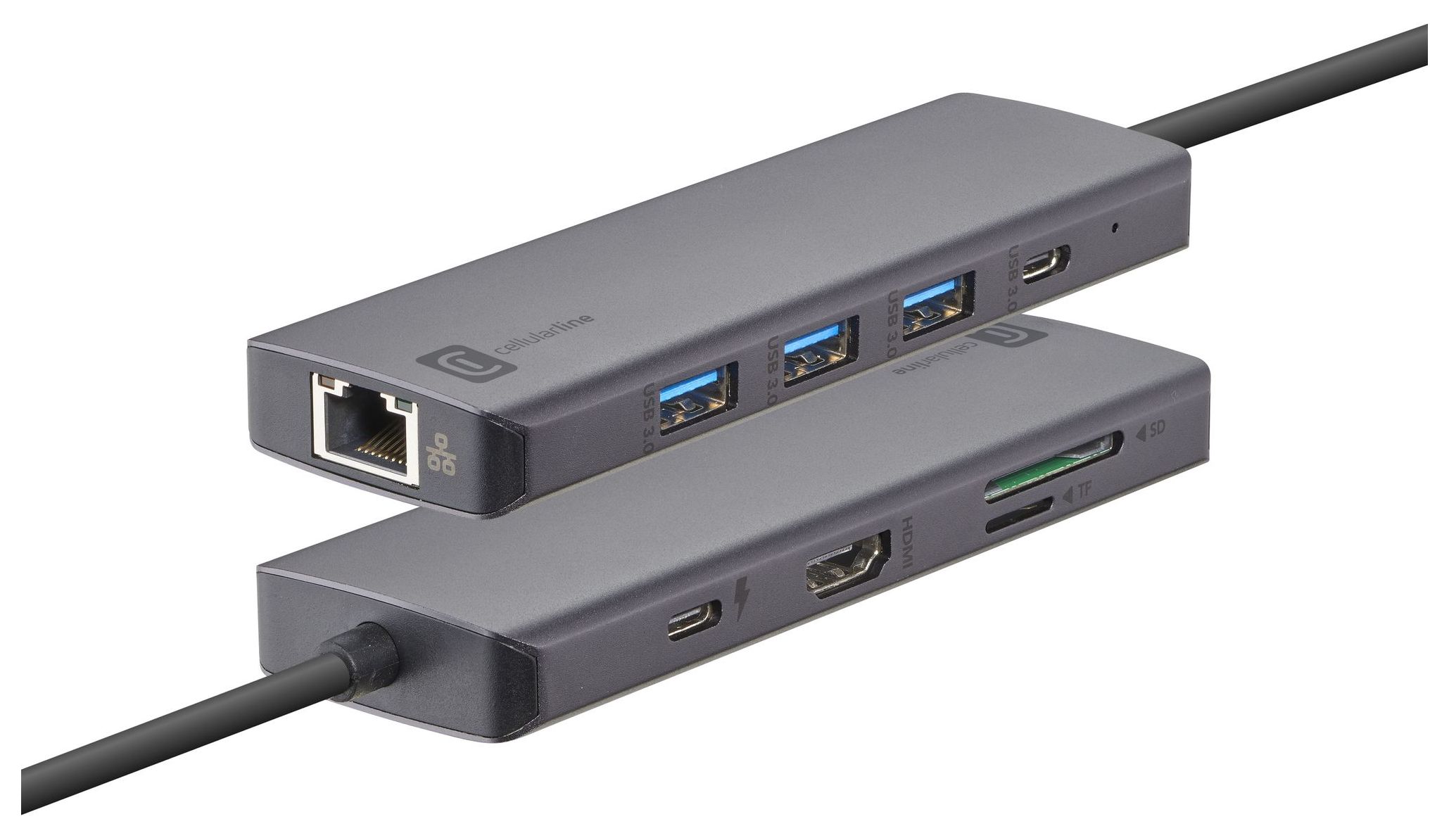HUB PRO ist das ideale Zubehör, um die Konnektivität Ihres Geräts auf kompakte, leistungsstarke und elegante Weise zu verbessern. Mit einem eleganten und robusten Metallgehäuse gefertigt, bietet es hervorragende Leistung und tadellose Stabilität. Ausgestattet mit 9 Anschlüssen umfasst es 3 USB-A 3.0 und 1 USB-C 3.0 für Datenübertragung und Aufladen, einen dedizierten USB-C-Anschluss für das Laden mit bis zu 100W, einen HDMI-Anschluss mit Unterstützung für bis zu 4K@60Hz, einen LAN/Ethernet-Anschluss sowie Steckplätze für SD- und Micro-SD-Karten. HUB PRO ist perfekt für alle, die eine universelle und multifunktionale Lösung suchen, die Vielseitigkeit, Geschwindigkeit und ein anspruchsvolles Design vereint.