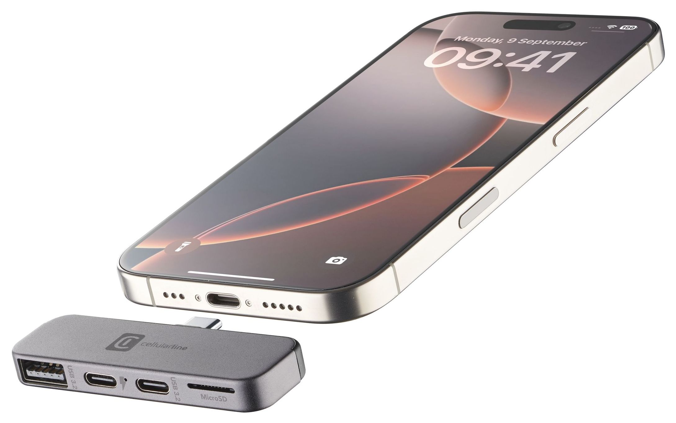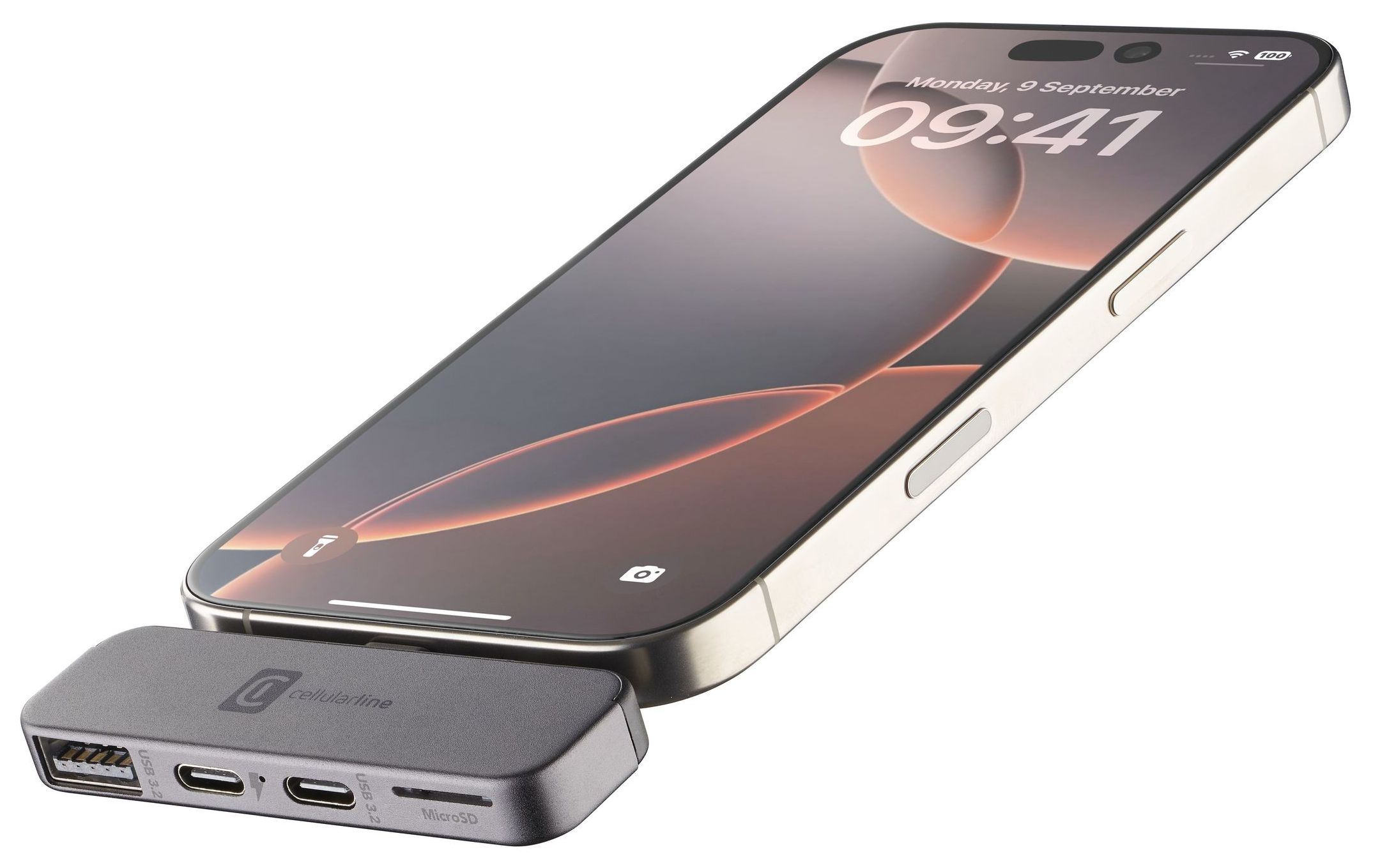 SMARTPHONE HUB ist das kompakte und vielseitige Zubehör, das den Speicher Ihres Geräts erweitert und die Konnektivität verbessert. Mit 4 Anschlüssen – USB, 2x USB-C und Micro SD – können Sie Festplatten, USB-Sticks und Speicherkarten schnell und stabil anschließen. Ideal zum Speichern und Übertragen von Fotos, Videos und Dokumenten unterwegs. Mit seinem schlanken, leichten Design und der Plug-&-Play-Funktion ist SMARTPHONE HUB die perfekte Lösung für alle, die Effizienz, Praktikabilität und höchste Mobilität in einem Zubehör suchen.
